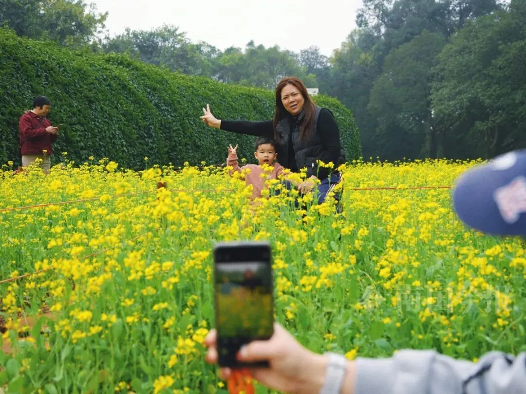 “我们种植的是速生油菜,开花后花株仍会持续生长。”据柳州市雀儿山公园管理处绿化科技术员陆柳华介绍,目前园区绽放的油菜花面积约2000平方米,于2025年11月15日播种,12月30日进入花蕾期,2026年1月5日起陆续开花,盛花期可持续至2月上旬。“若天气适宜,花期还可延续至2月中下旬。”