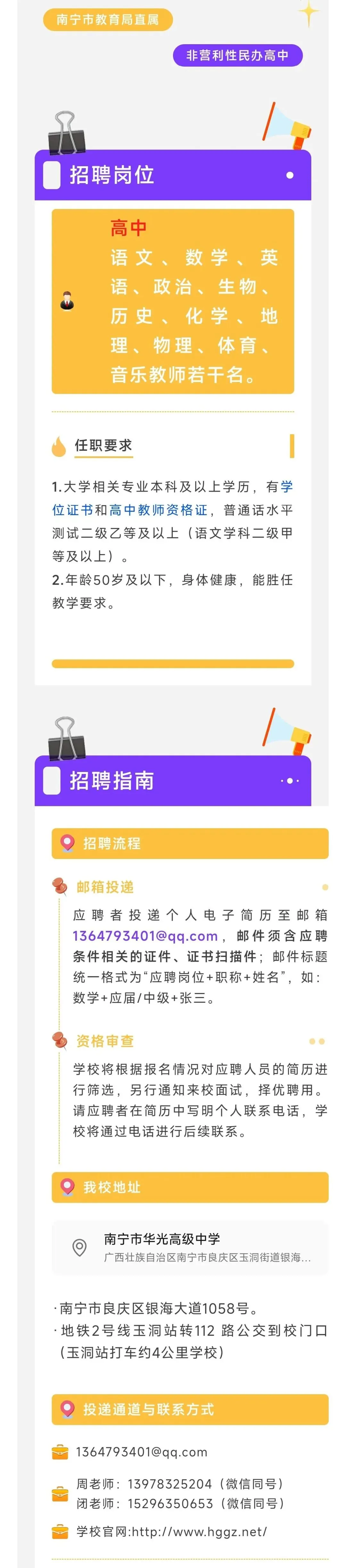 >【本科】广西壮族自治区南宁市华光高级中学招聘 | 音乐教师