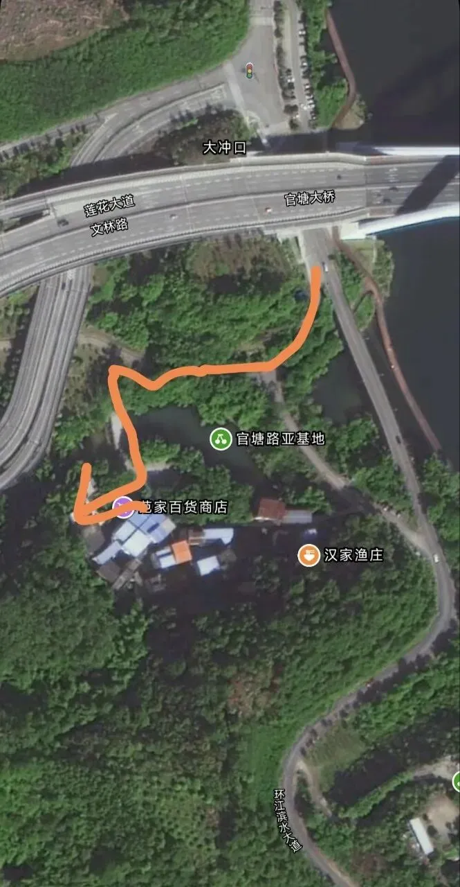 1. 下官塘桥底后右拐,前行100米左右可见岔路,路边可停车;也能将车停在官塘大桥桥底停车场,步行入树林。