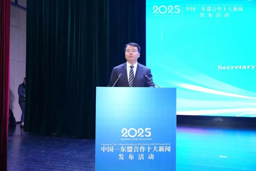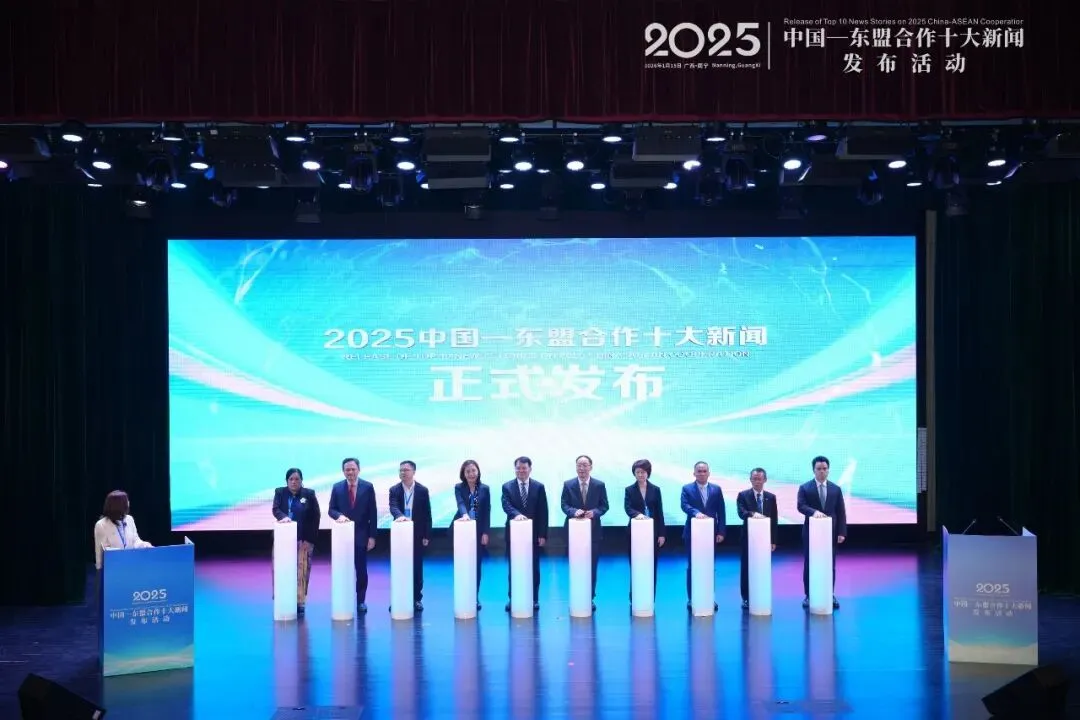 1月15日,2025年中国—东盟合作十大新闻发布活动在广西南宁举行。本次活动在中国外文局、外交学院、广西壮族自治区党委宣传部的指导下,由中国外文局亚太传播中心、外交学院亚洲研究所、广西大学、广西国际传播中心联合主办。
