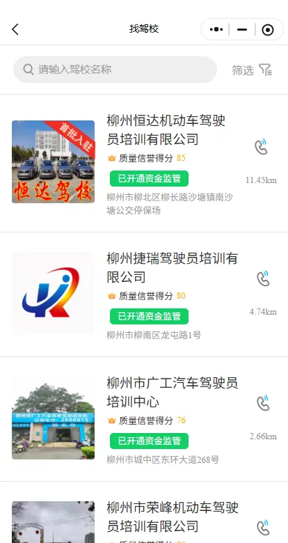 平台已入驻多家优质驾校,如恒达驾校、捷瑞驾校等,每家都有详细信息和实景图片,帮你做出明智选择!