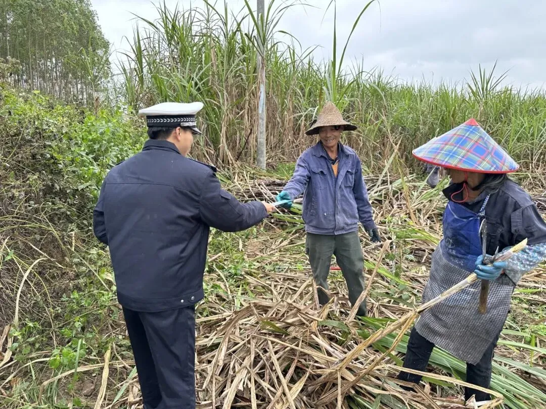 经询问,车上乘客均为砍收甘蔗的蔗农。驾驶人为了减少往返次数,抱着“多载两人、路程不远、未必遇到检查”的侥幸心理冒险上路,结果被当场查获。民警责令驾驶人立即对超载人员进行安全转乘,并依法对其进行了处罚。