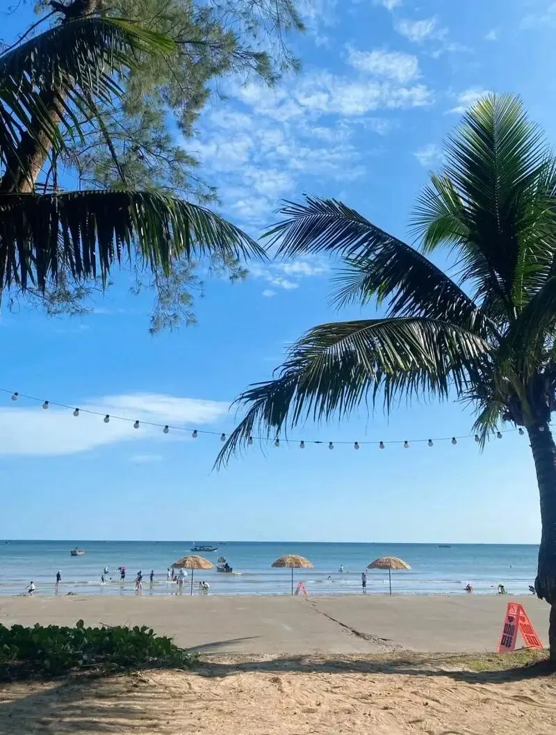 一天版,早进东兴口岸看桥看市,午后鸡粉咖啡一套,傍晚去江山半岛踩浪。