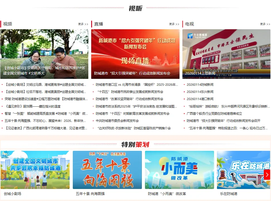 防城港市新闻网“特别策划”板块。