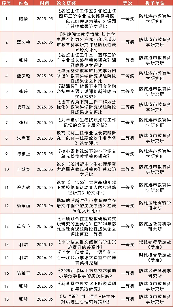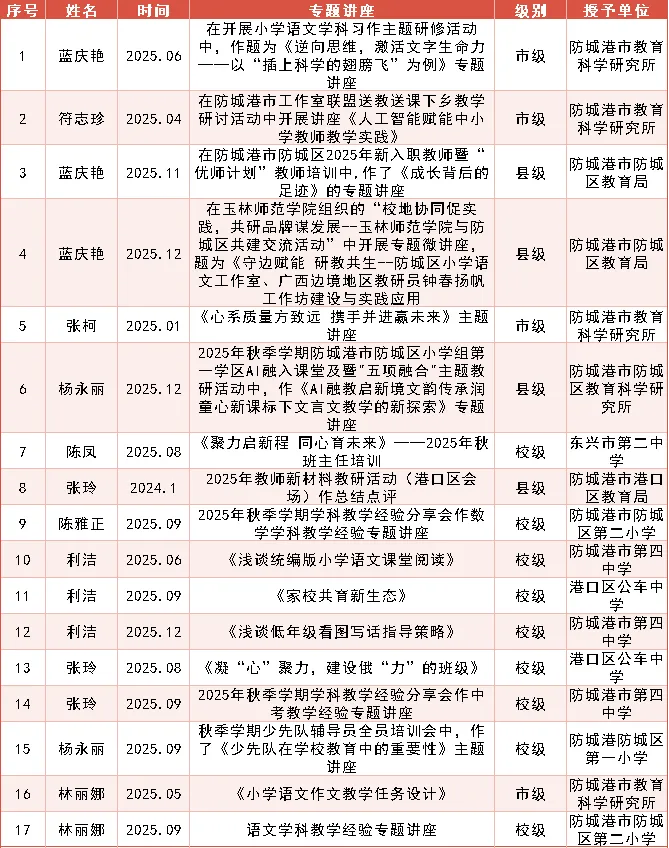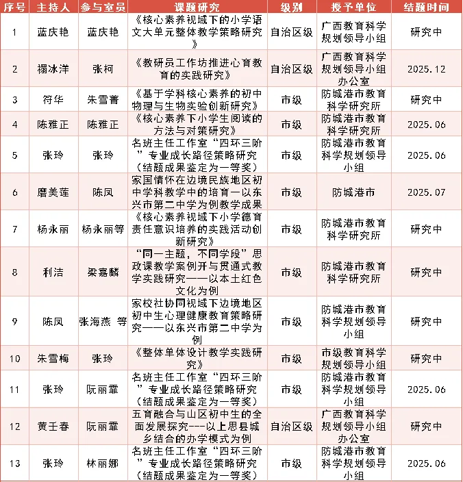 【工作总结】 深耕细作 行稳致远 —防城港市张玲骨干班主任工作室2025年度荣誉盘点