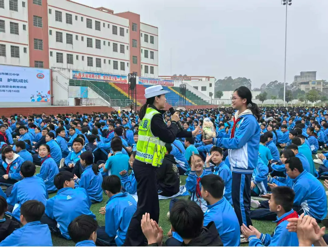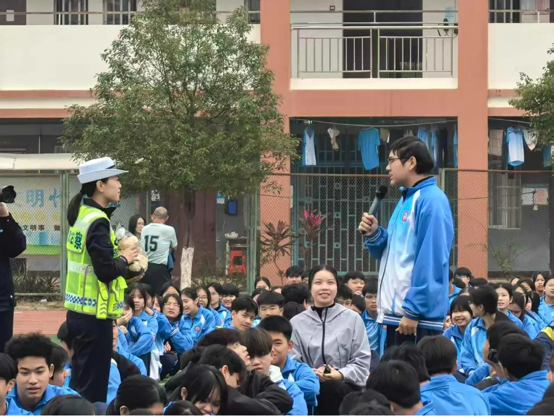 “骑行电动车需要满足什么年龄条件?不同颜色的电动车牌有什么区别?”贾茹警官以互动问答的形式拉开交通安全教育的序幕,瞬间点燃了同学们的参与热情。