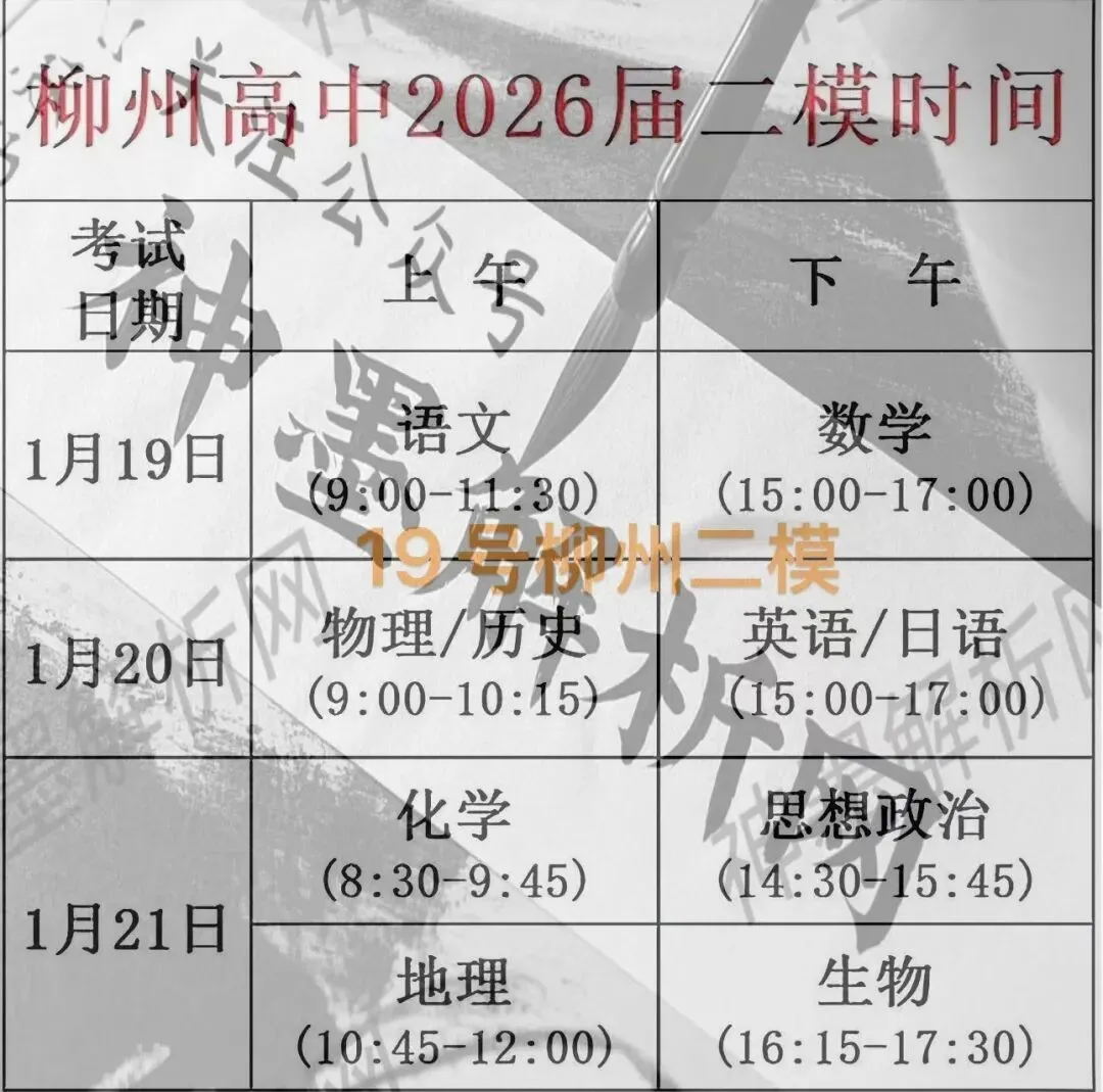>【柳州二模】1月19日柳州高中2026届二模考试
