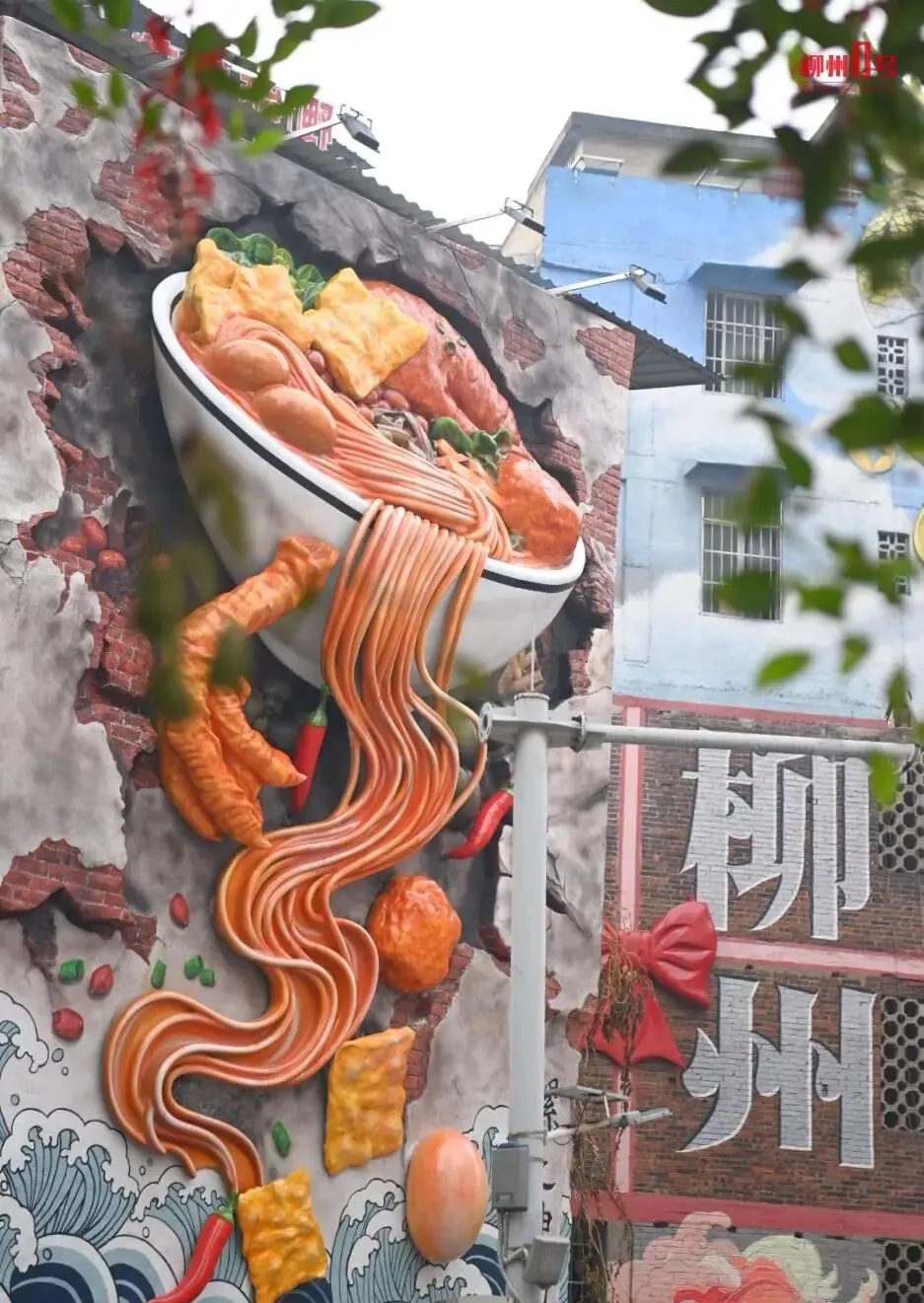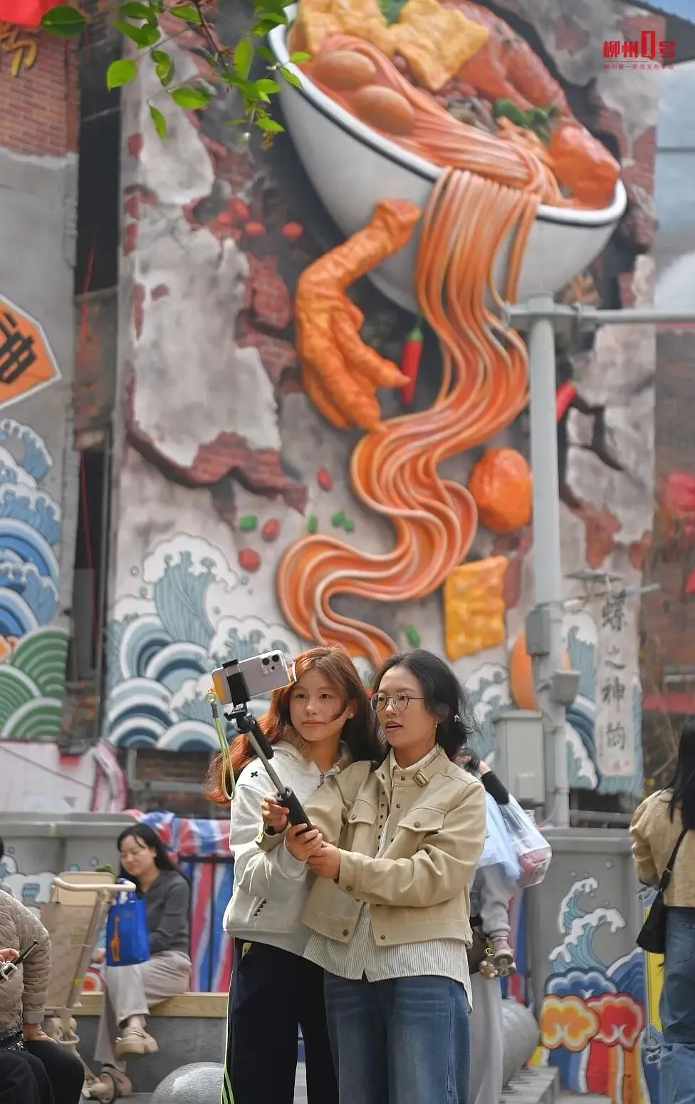 “我们姐妹俩是专门来柳州吃螺蛳粉的。”四川游客张冉说,看到青云菜市螺蛳粉打卡墙设计得好看又特别,不拍几张照片留念会感到遗憾。