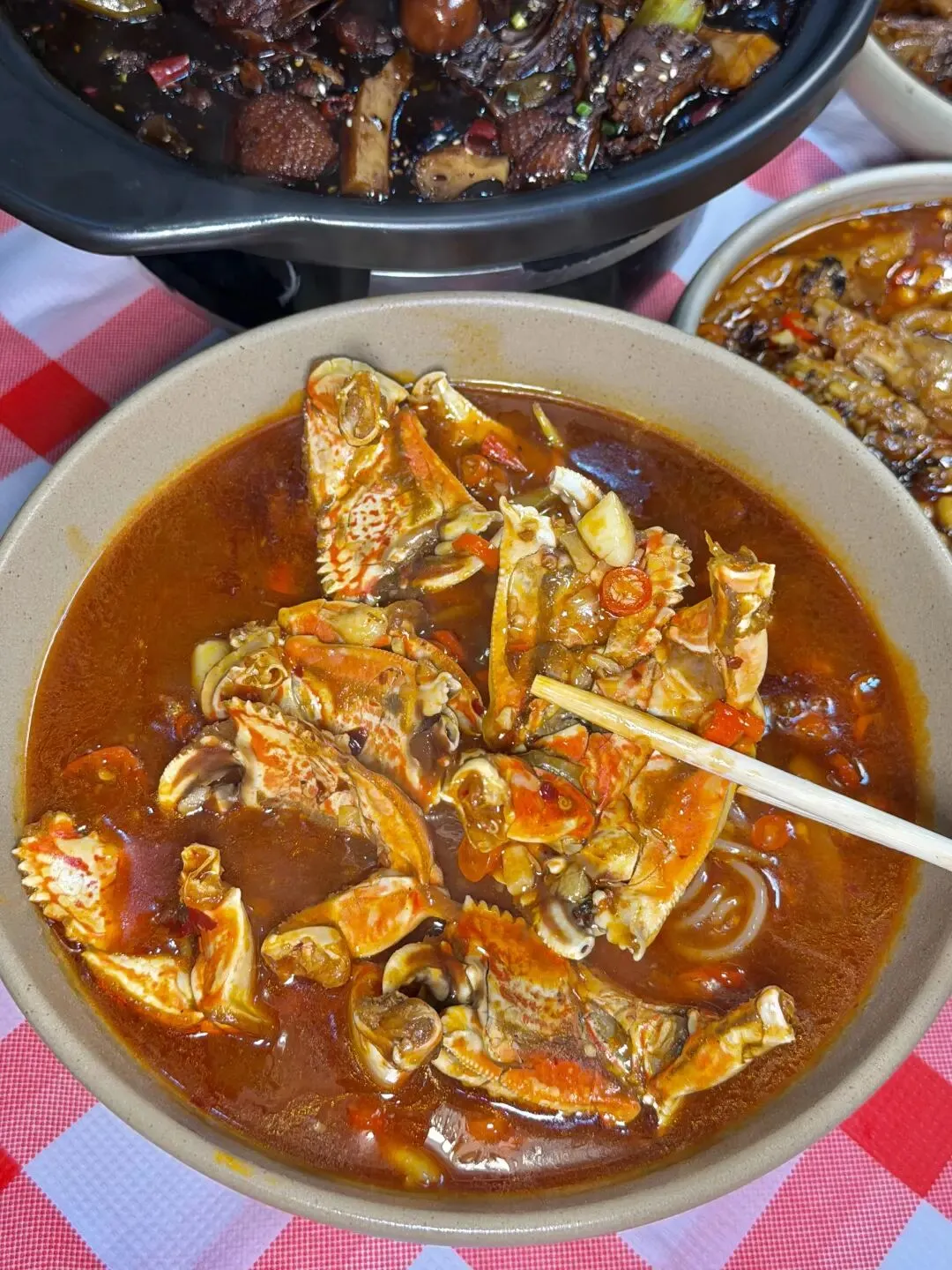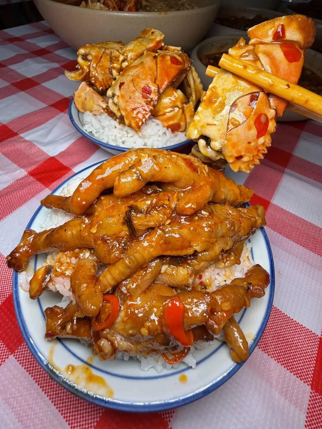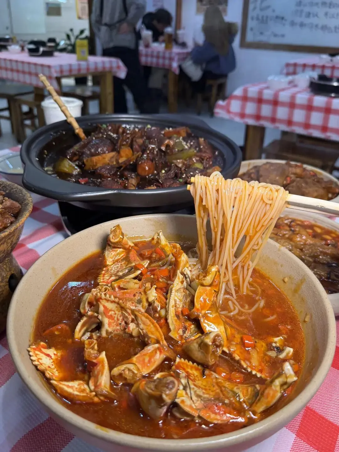 爽辣开胃的鸭三件、鲜醇入味的蟹脚捞粉也千万别错过!鸭三件卤得透彻,辣中带麻越啃越香;蟹脚肉质饱满,裹着浓郁酱汁与米粉拌匀,鲜辣过瘾,每一口都直击味蕾。