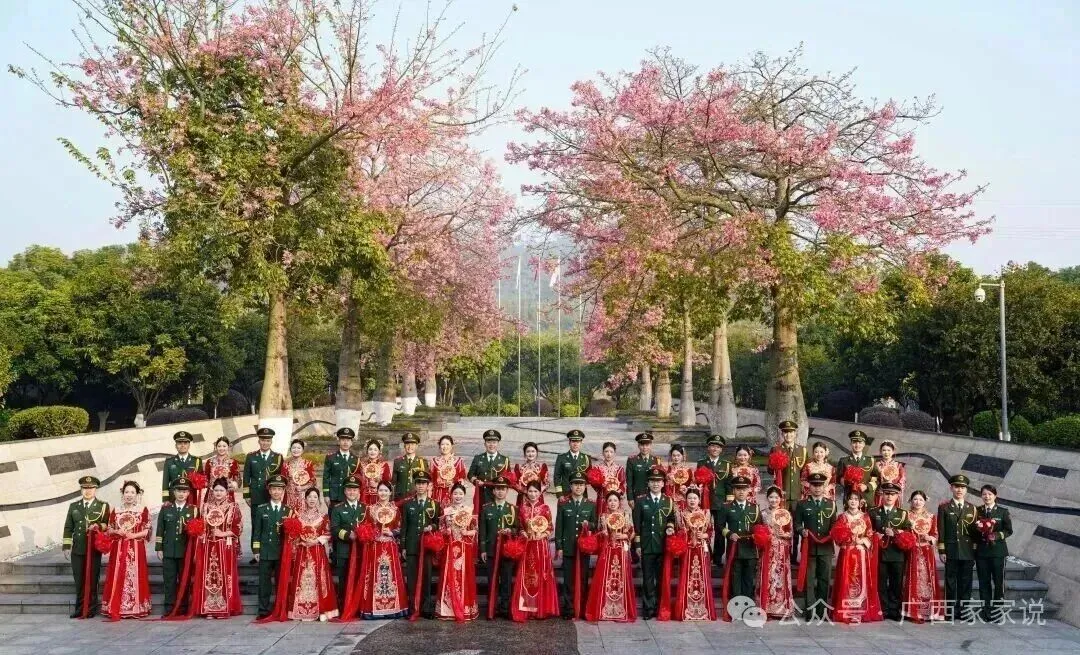 近日,武警广西总队柳州支队举办“爱在龙城・情满军营”军人集体婚礼,增强官兵及家属的荣誉感、幸福感与获得感,提升部队感召力、凝聚力和向心力。活动现场,22对新人成为焦点。在战友热烈掌声与诚挚祝福中,他们携手许下终身誓言,将军婚的独特浪漫与责任担当展现得淋漓尽致。接亲现场温馨满满,新人互道祝福、签订“一纸婚书”,新郎向新娘敬军礼,仪式感十足。随后,新人向官兵及宾客分发喜糖,并集体合影留念,定格幸福瞬间。