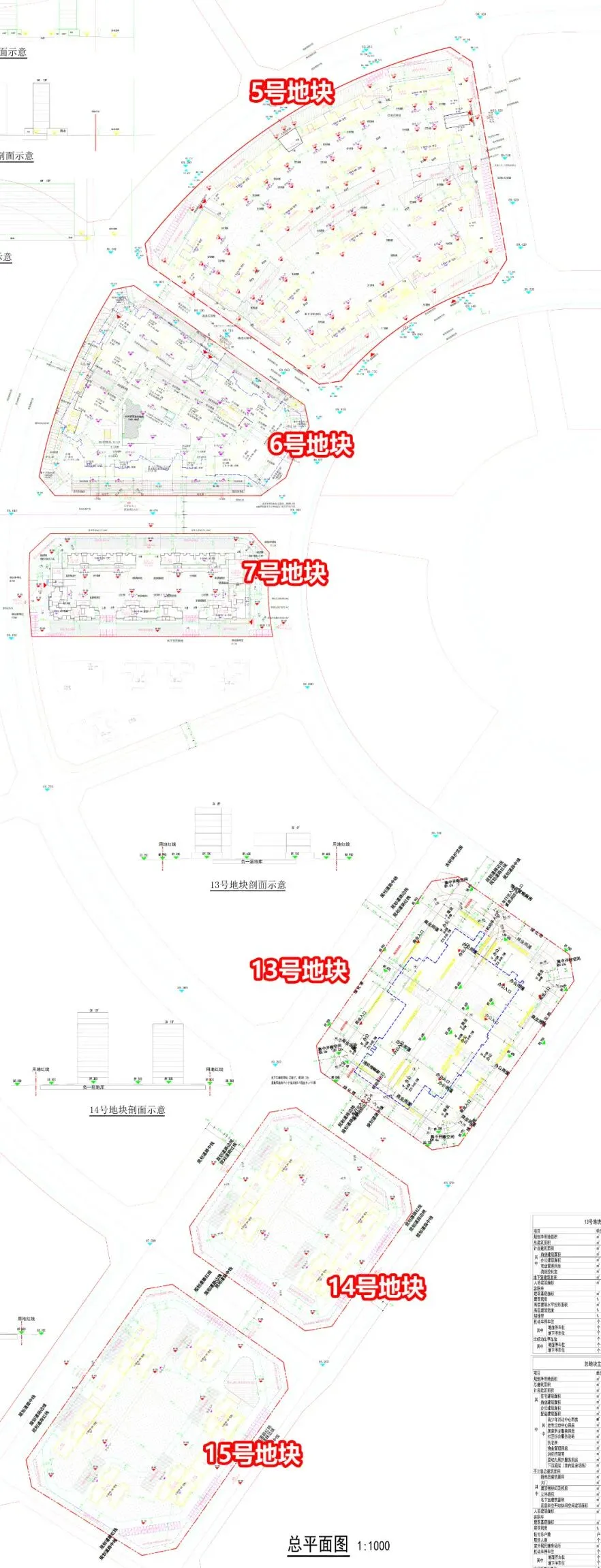 15号地块原规划有2栋10层办公楼、1栋5层办公楼、1栋4层办公楼,本次调整后变为了6栋住宅,其中2栋为50层、150米高的超高层,1栋为27层,2栋为20层。