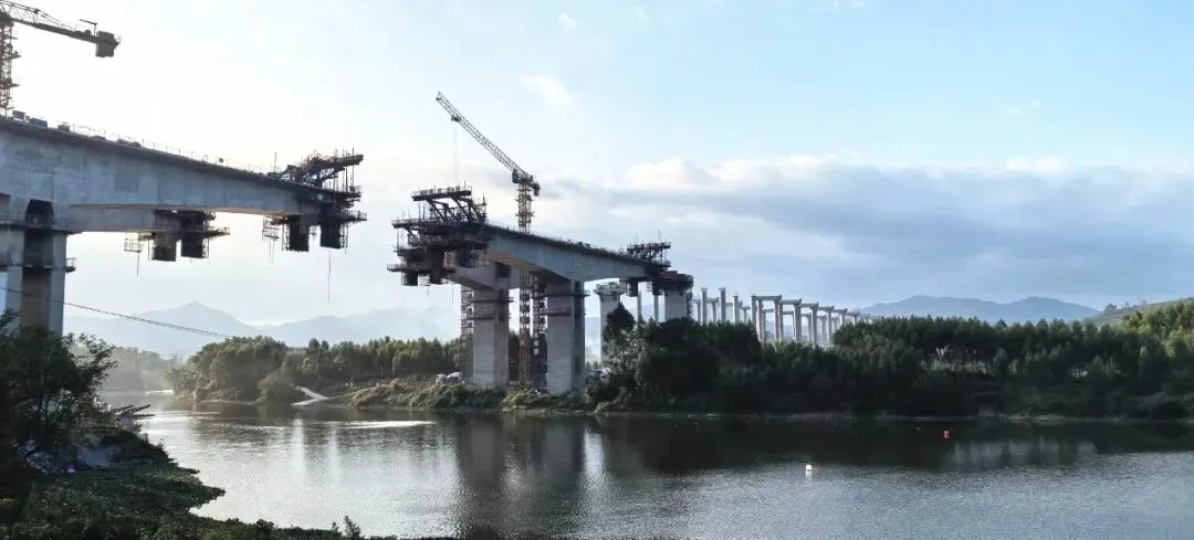 ▲在建的桂林外环高速公路一处跨江特大桥(图源/项目公司)