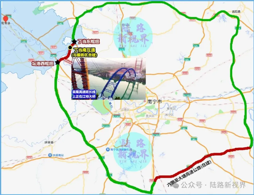 吴隆高速延长线建成后,可实现南宁二环高速西段全线贯通。待S90南宁南过境线公路(六景至大塘段)2027年通车运营,南宁二环高速闭合线将形成。