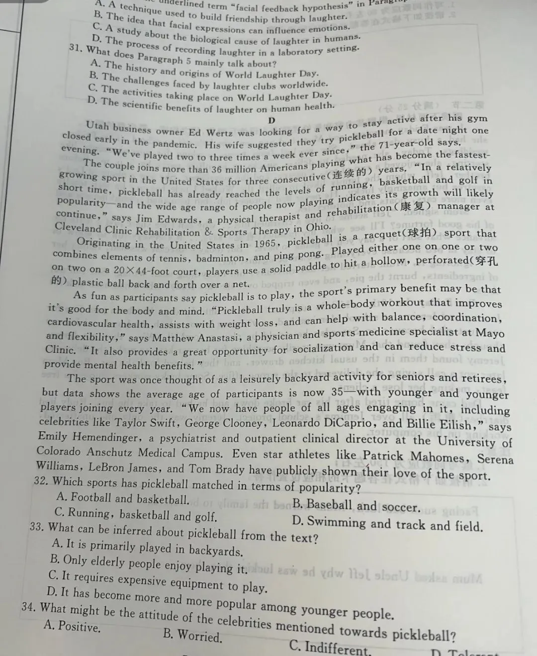 关注本公众号,消息栏下方“考卷解析”领取试题及解析!