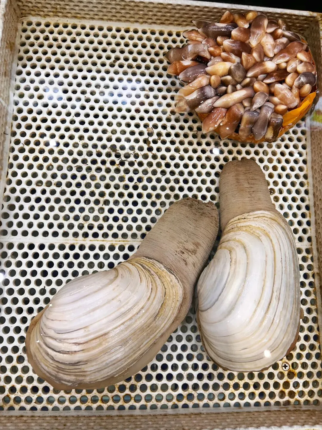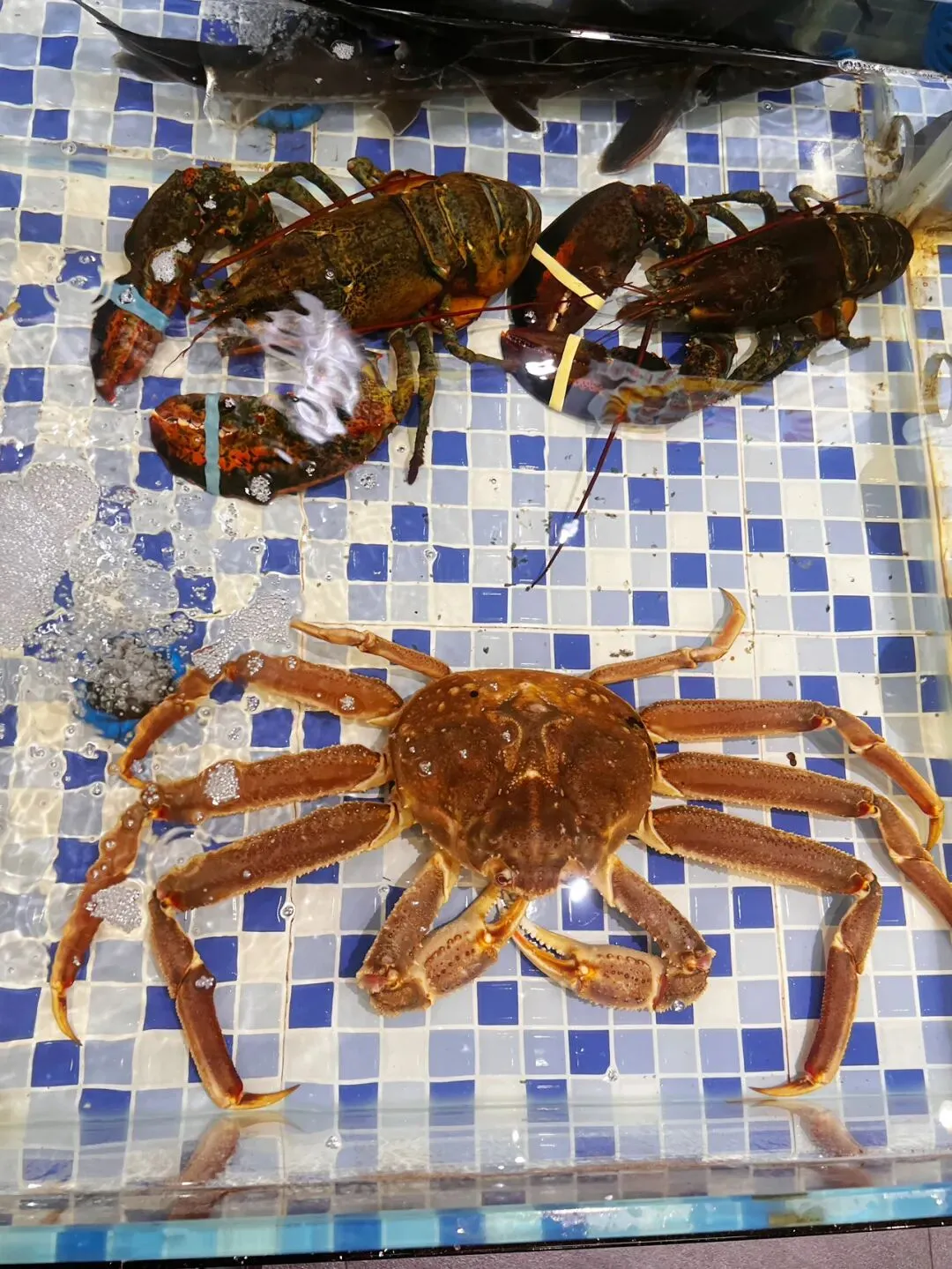 非常大只的螃蟹和龙虾,看着就不便宜!也就只能看看🥹还冒气的大大只生蚝和花甲