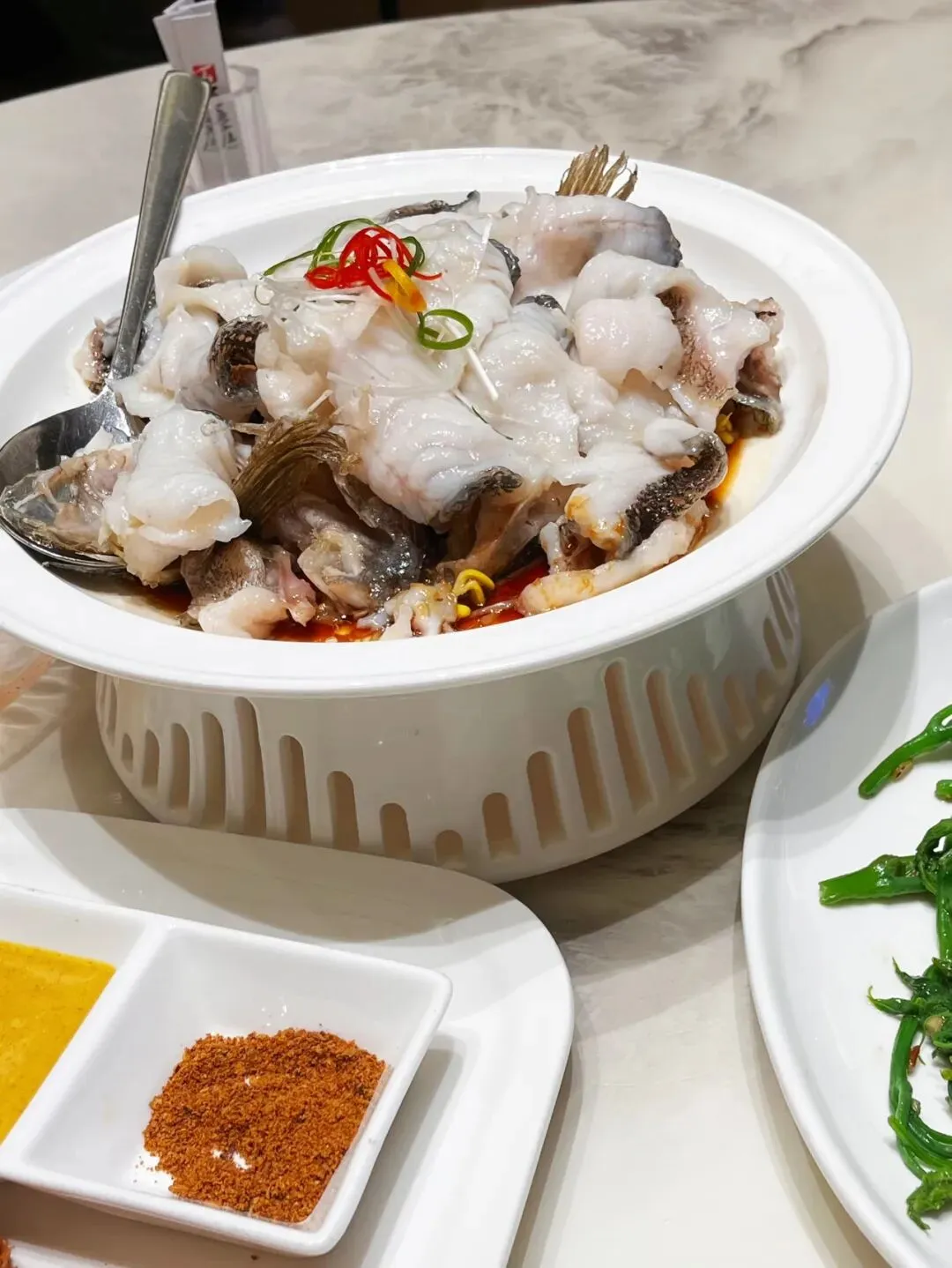 既然来了海鲜店,那就顺便点条鱼,忘记点的是什么鱼了,称斤现杀的,很新鲜,还是挺好吃的。