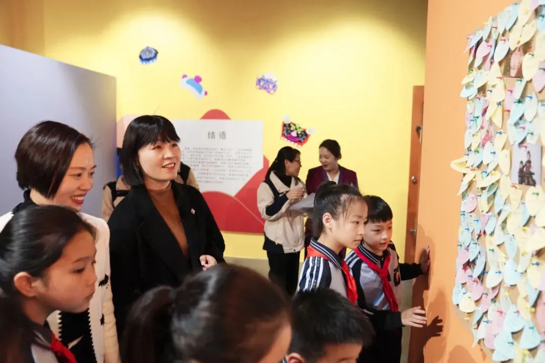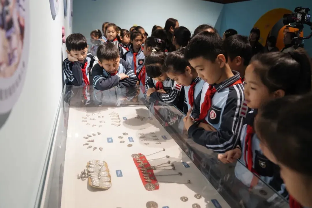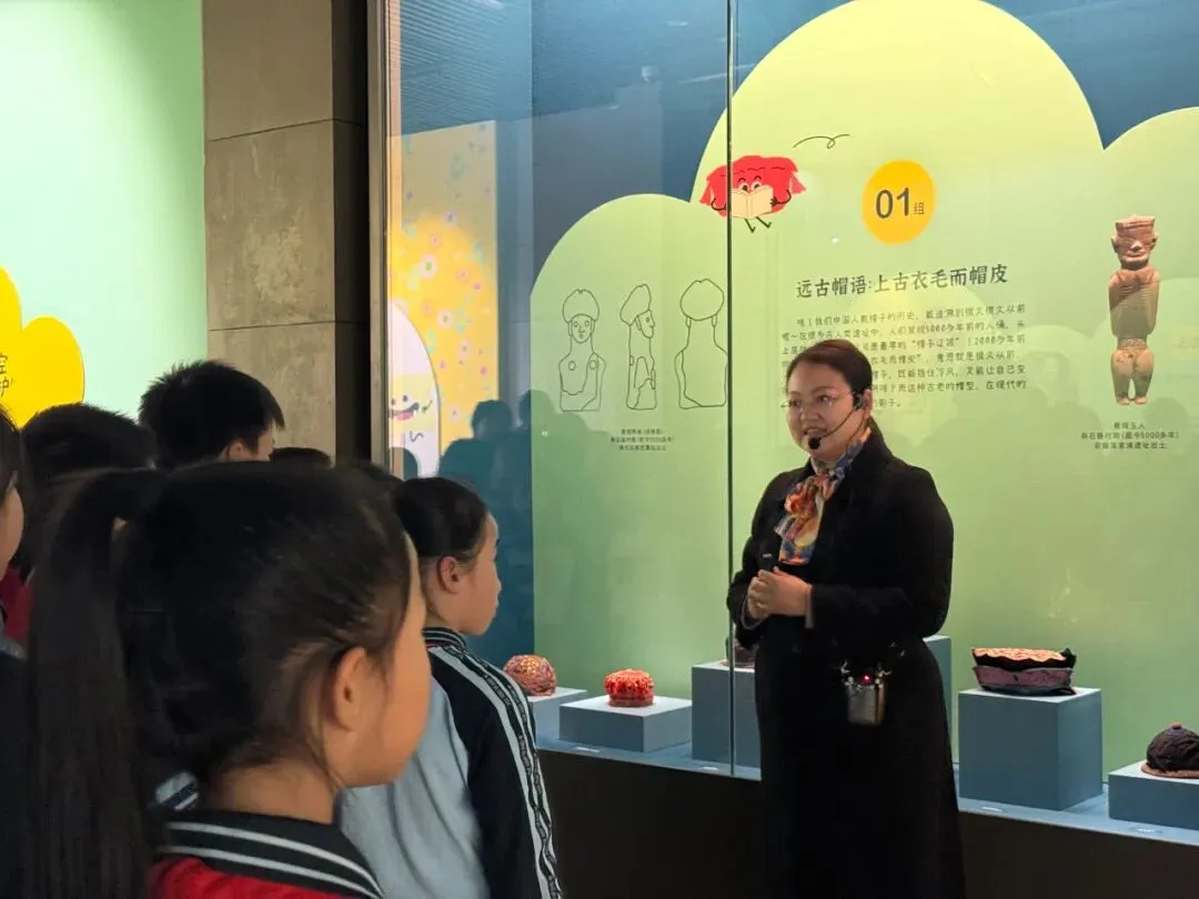 揭牌后,师生代表在讲解员引导下参观了 “我的帽子会说话:广西传统童帽文化展”。大家聆听了刺绣工艺、祈福寓意及民族融合故事,近距离触摸传统服饰中的民间智慧与温度,在沉浸式体验中厚植了民族文化情怀。