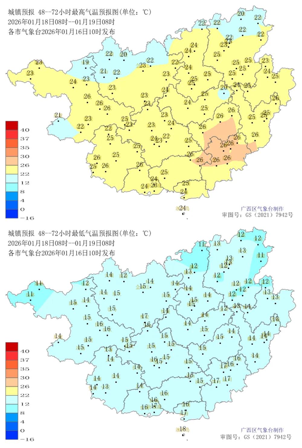 北部湾海面:17至20日,多云到阴天有分散小雨,有雾,偏东风4~5级;21日,阴天到多云,偏北风逐渐加大到5~6级、阵风7~8级;22至23日,阴天到多云有分散小雨,偏北风5~6级、阵风7~8级。请海上船只注意安全。