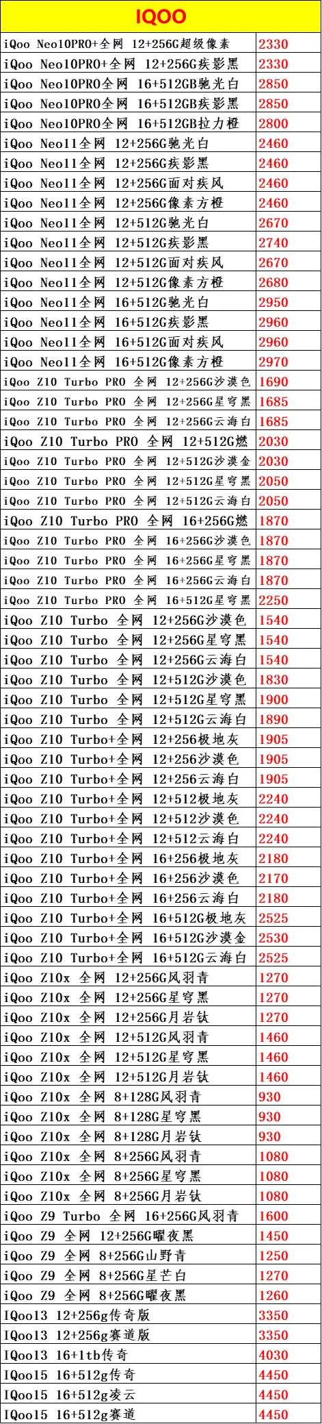 南宁iPhone17 Pro Max 1TB 银色 13830 南宁iPhone17 Pro Max 1TB 橙色 13700 南宁iPhone17 Pro Max 1TB 蓝色 13700 |