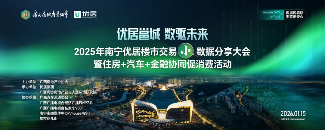 2026年1月15日下午,优居邕城,数驱未来——南宁优居楼市交易小数据分享大会暨住房+汽车+金融协同促消费活动,于广西建设大厦圆满举办。这不仅是一场数据的盛宴,更是优居践行责任、赋能行业的初心之约,是政企协联动、共促大宗消费的实践之举。