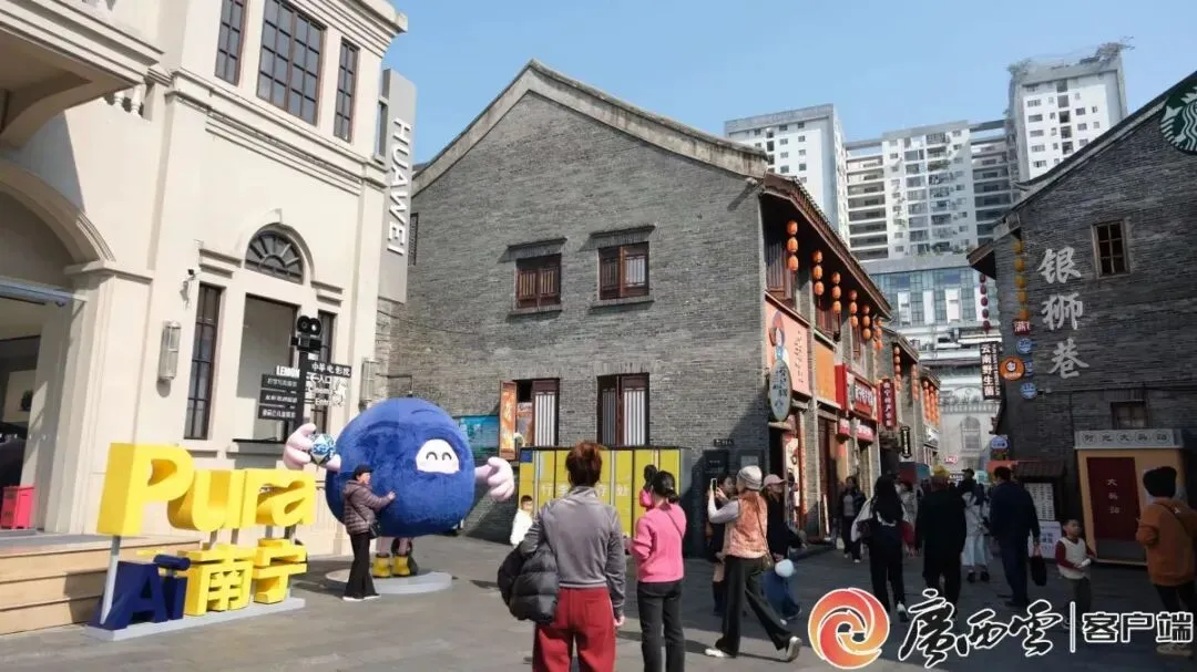南宁三街两巷历史文化街区游人如织,熙攘的人群漫步于青砖黛瓦之间。