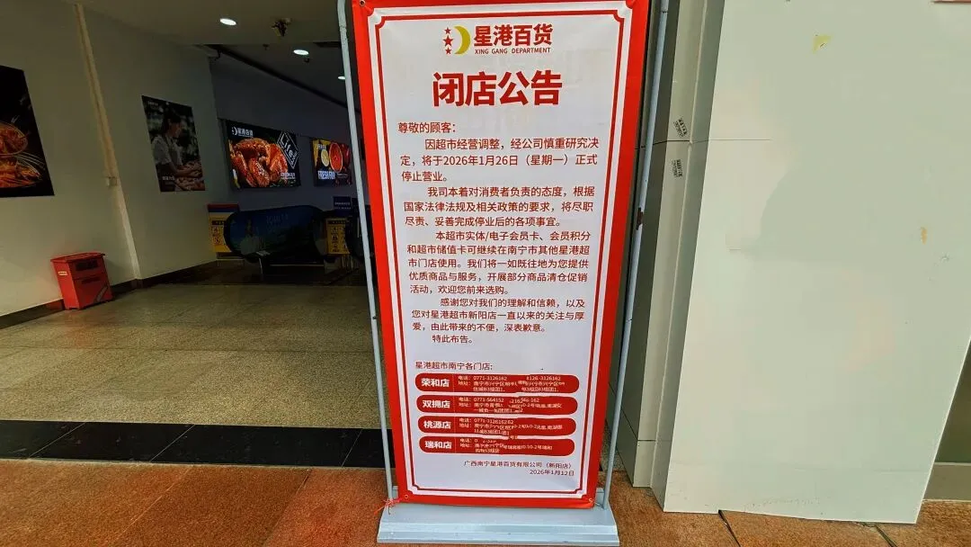 今天去了一趟新阳路那边发现这个星港超市即将要停止营业了(2026年1月26号),它开业还不到一年的时候又要停止营业了,真的好可惜啊……