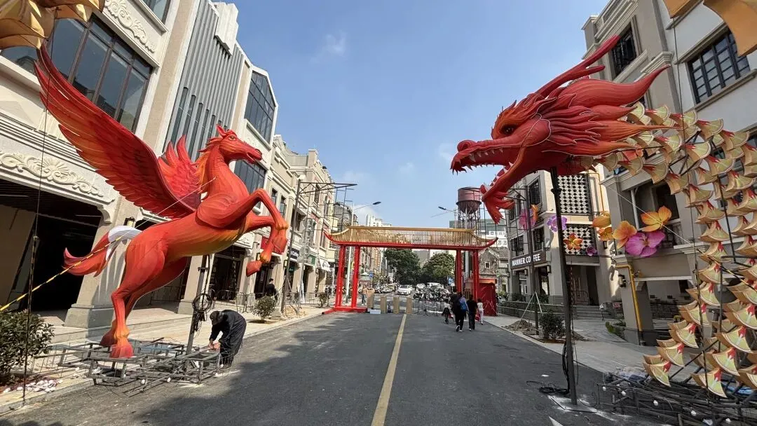 今天周末来到了新水街这里逛,发现这边装扮得很漂亮,有马有龙有花,还看见很多来这里拍照打卡,全新的样子是挺不错的,而且入口处还装了闸机,也不懂是干嘛用的……