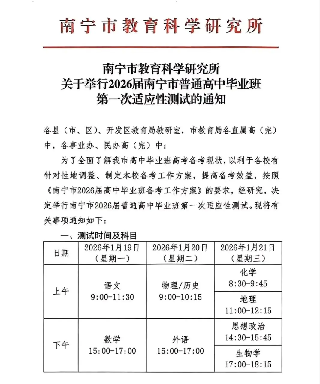 最新考试+试卷!1月19日南宁市2026届普通高中毕业班适应性测试