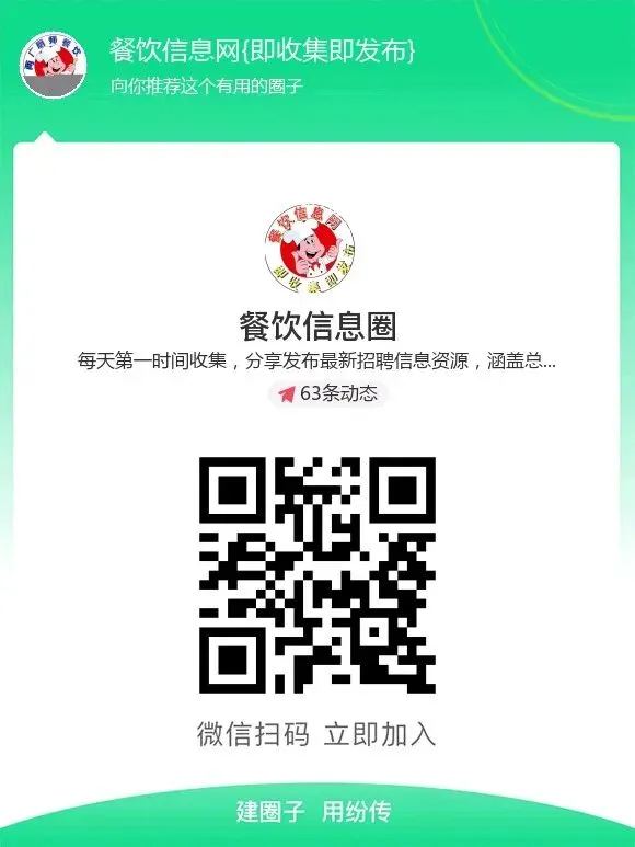因公众号每天只能更新一次,导致有很多招聘信息资源没能第一时间更新发布,所以特意创建了一个纷传餐饮招聘信息圈子,方便找工作的餐饮厨师同行,主要是发布广西区域,广东区域,日料寿司刺身和省内精选信息,公众号没有的,圈子里面都有,如果大家对于招聘信息资源需求比较多,可以选择点击下方小程序加入餐饮信息圈!每日至少提供100条以上最新招聘!!!进去圈子后可以直接搜索地方名称来找,也可以通过专题来找,可以自由发布招聘信息!比公众号招聘资源更全。绝对超值。还有很多功能就不一一介绍了。目前定价是10元一个月,2个月18元,,按天算一天才3毛钱,每天花2个多小时时间。本质也是等价交换,如果觉得值,并且需要更多资源,可以点击下方小程序加入一下吧!