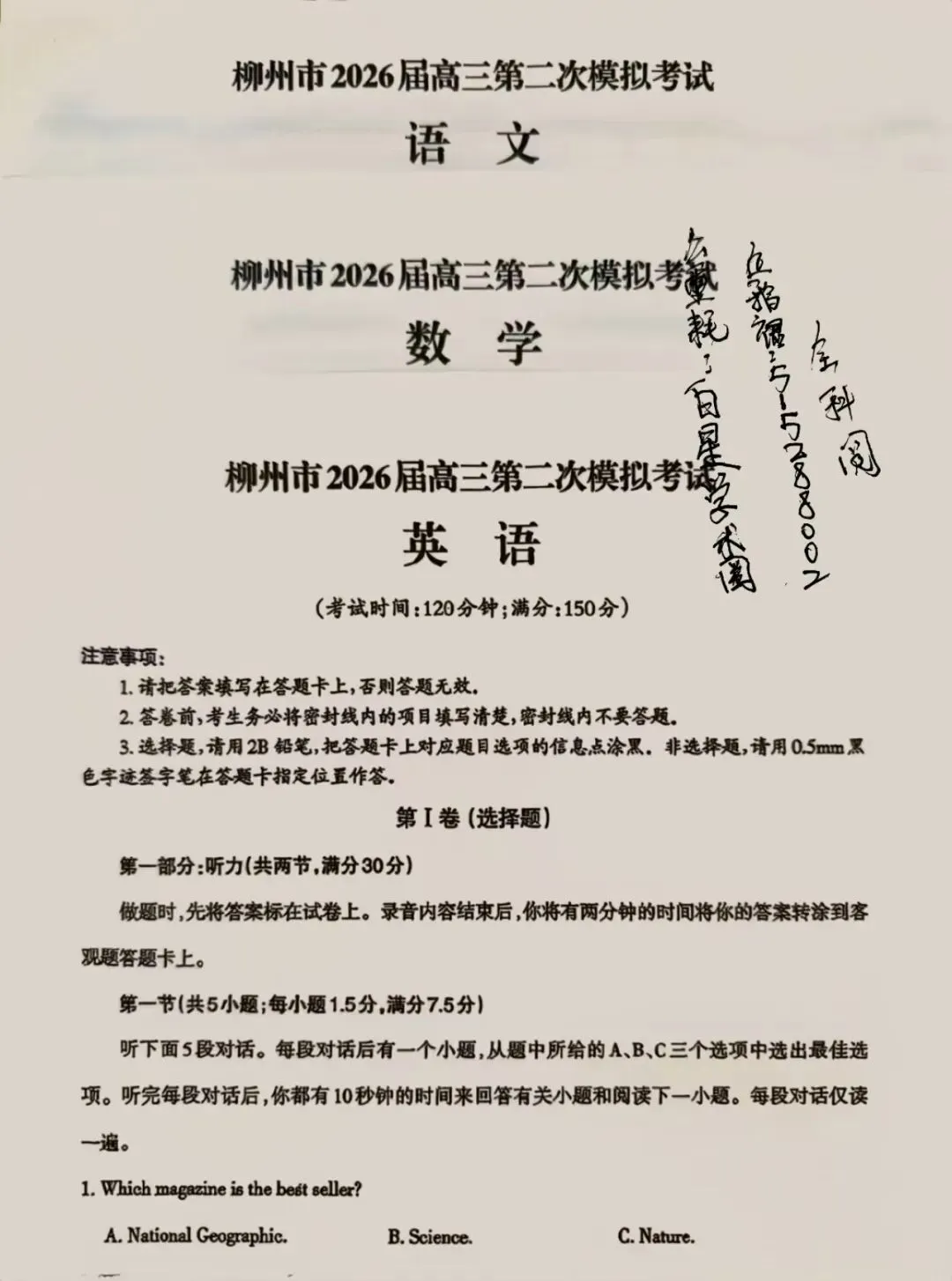 柳州市2026届高三第二次模拟考试