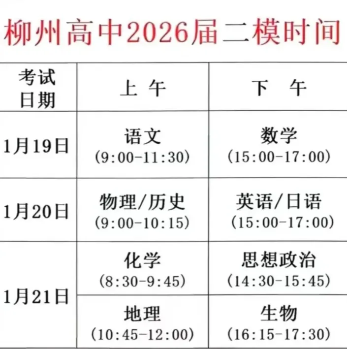 >柳州市高三第二次模拟考试安排(柳州二模)