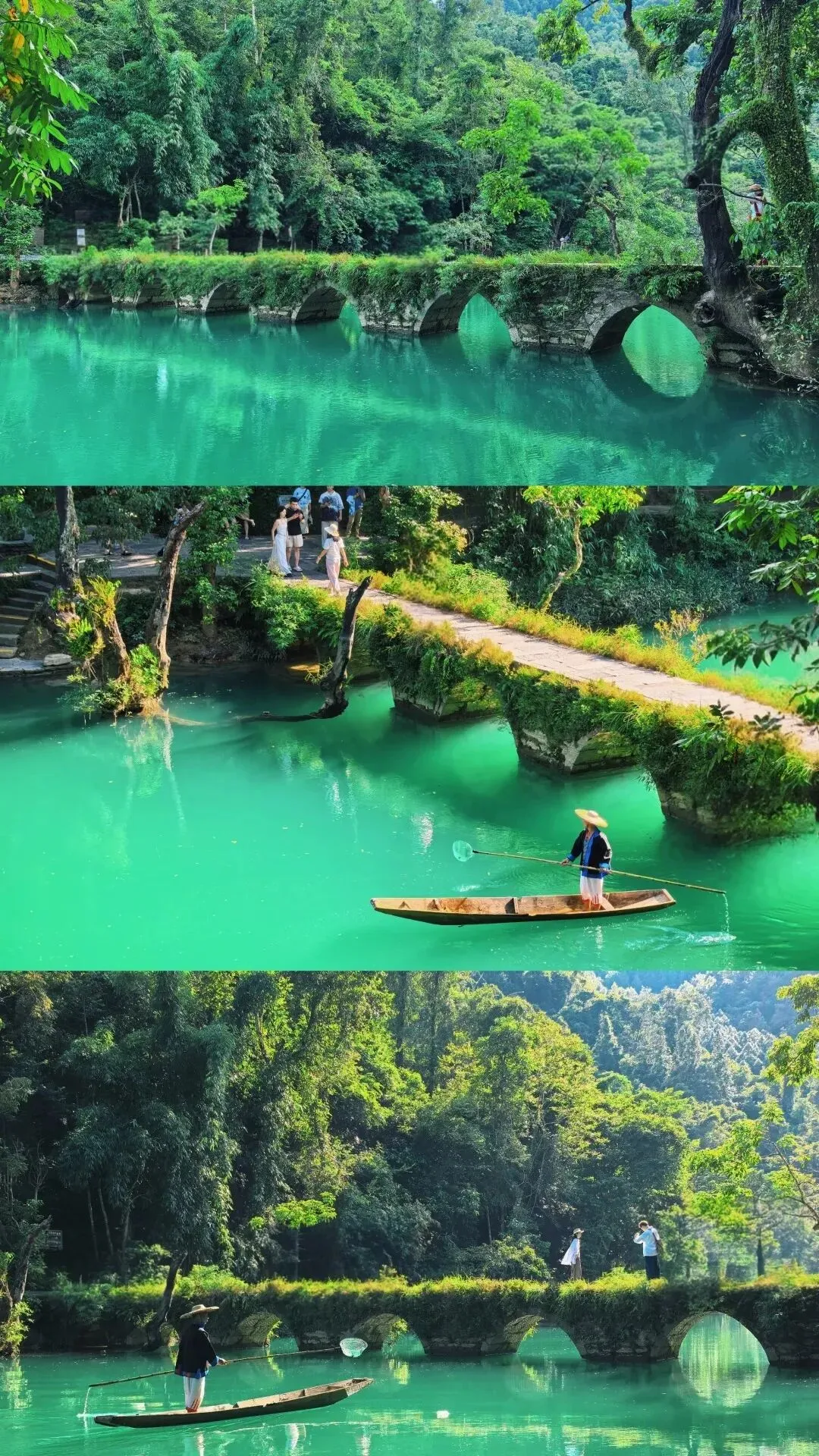 09:00 景区全长7公里,得名于响水河上一座建于清道光年间的小七孔桥,融山、水、洞、湖、瀑为一体,巧夺天工,浑然天成。有悠蓝深邃的卧龙潭,林溪穿插的水上森林,潭瀑交错的六十八级瀑布,飞流狂泻的拉雅瀑布,古风亦存的七孔古桥,一起去探寻地球绿宝石的神奇与瑰丽