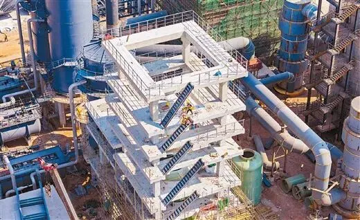 1月15日,在位于广西南宁东部新城六景片区的新材料产业园(南区)建设现场,工人们正加紧安装和调试厂房设备。目前,该园区已成功引进一批造纸化学品项目、新能源锂盐和硫酸项目等,将按计划推进园区投资建设,打造南宁绿色化工产业集聚区。