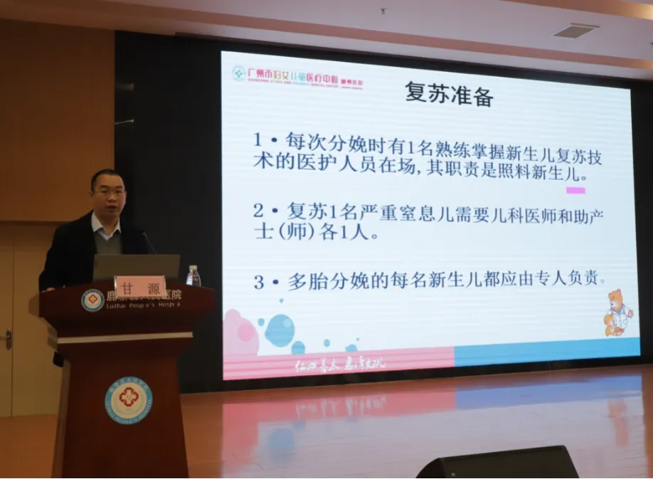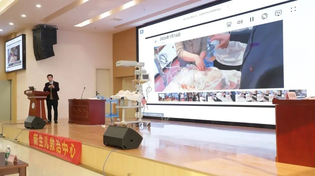 理论培训环节中,蒋永江主任首先作《新生儿复苏底层逻辑与临床思维》专题授课,系统阐释复苏的整体策略与临床决策要点,为学员构建扎实的理论框架。随后,韦义军副主任、梁婧护士长、甘源副主任医师分别围绕《新生儿科转运的管理规范》《新生儿输液外渗的预防及处理》《复苏过程中的细节与团队管理》展开讲授,内容覆盖从预防、现场复苏到转运管理的全流程,深入浅出,贴近临床实际。