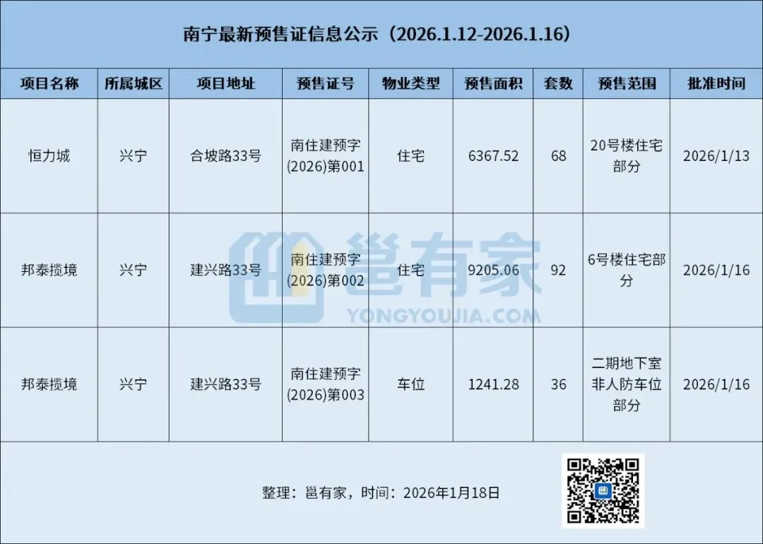 【首发】南宁最新预售证公示1.18