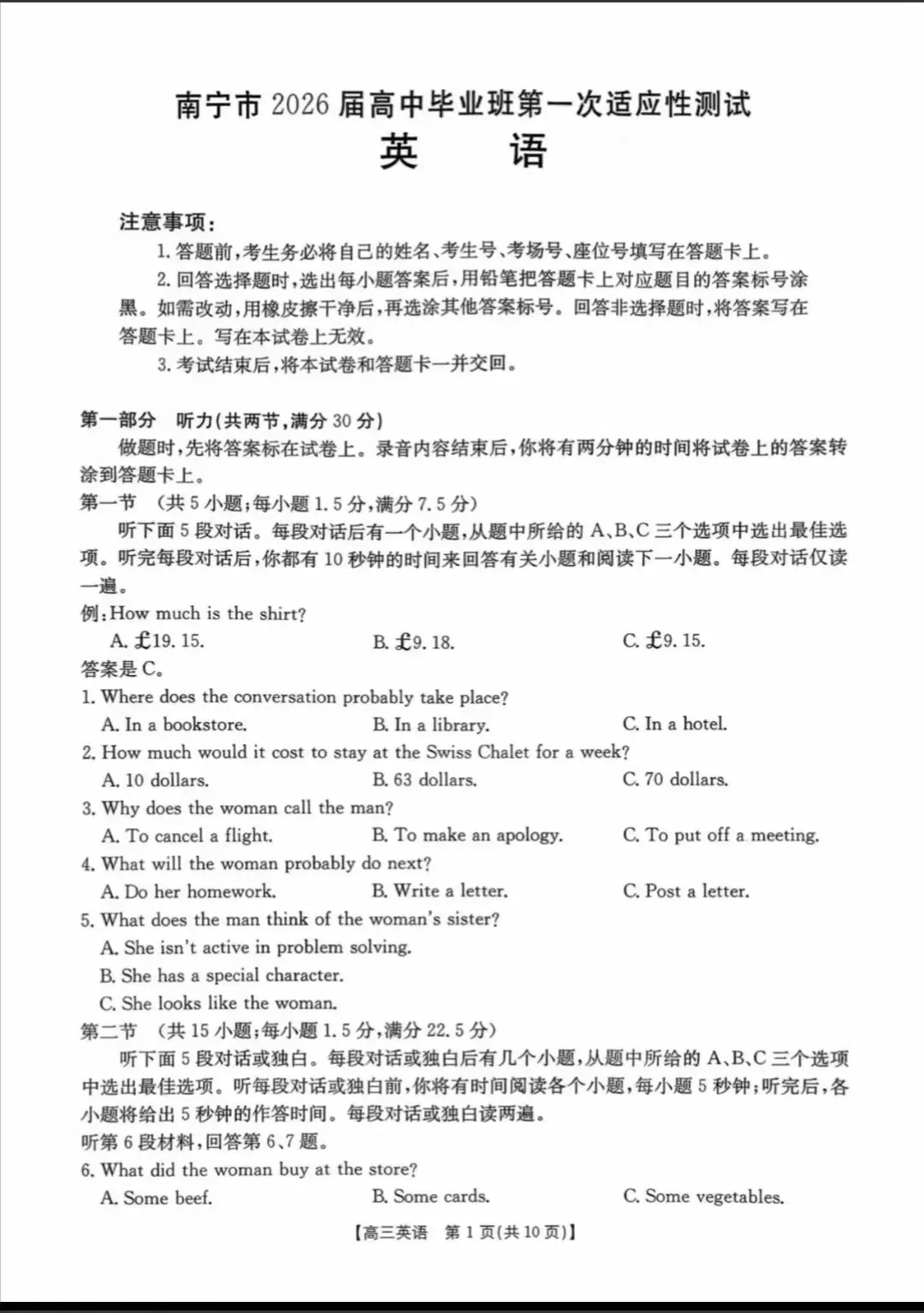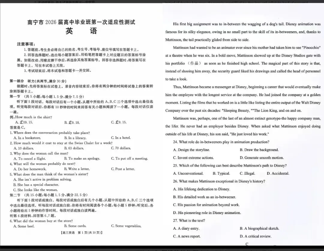1.19南宁一模·南宁市2026届高中毕业班第一次适应性测试#南宁一模