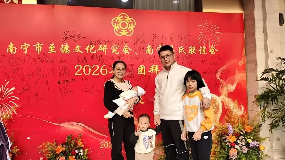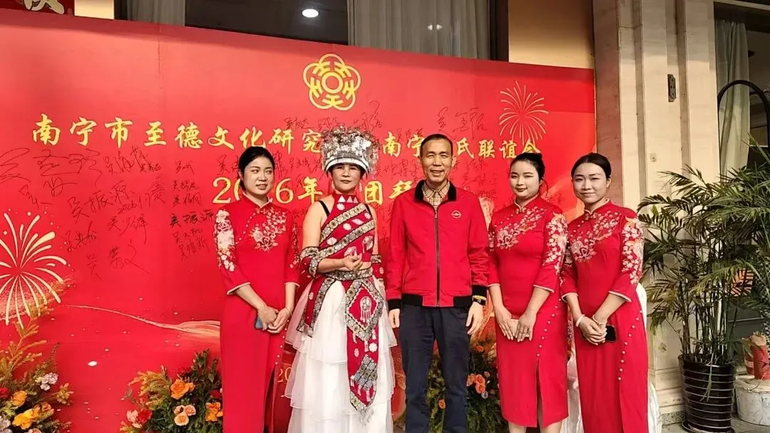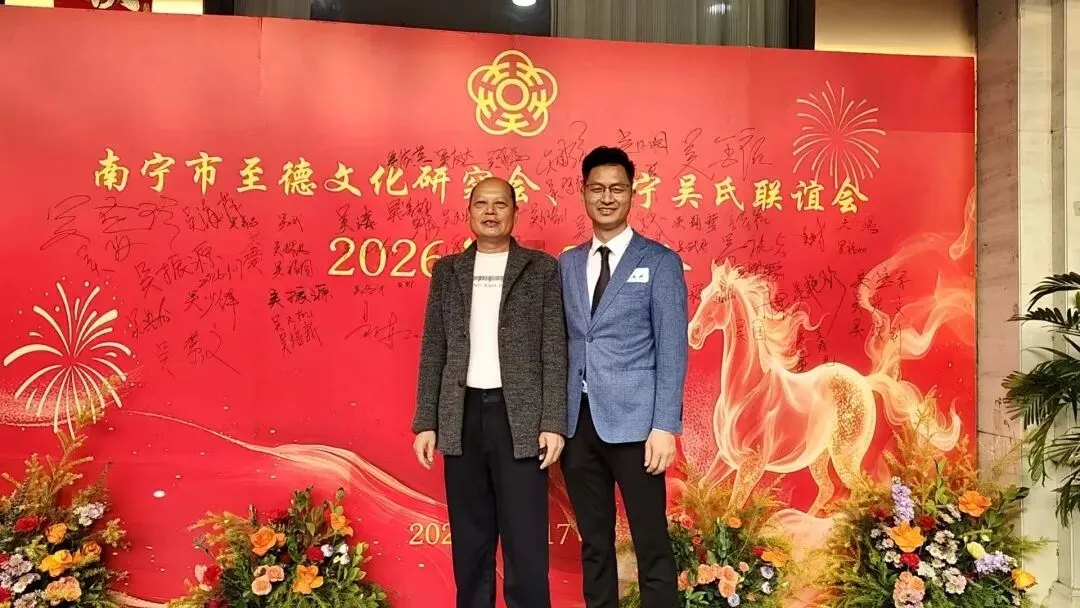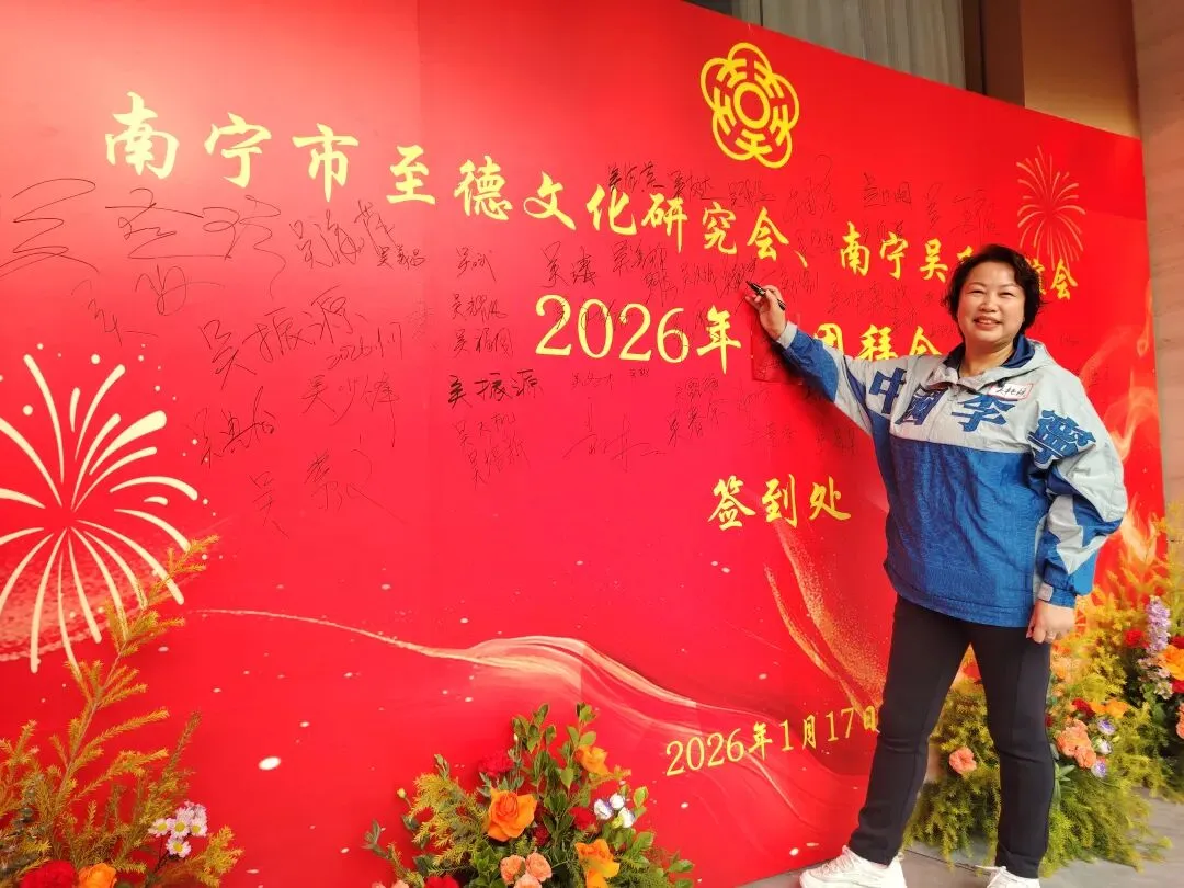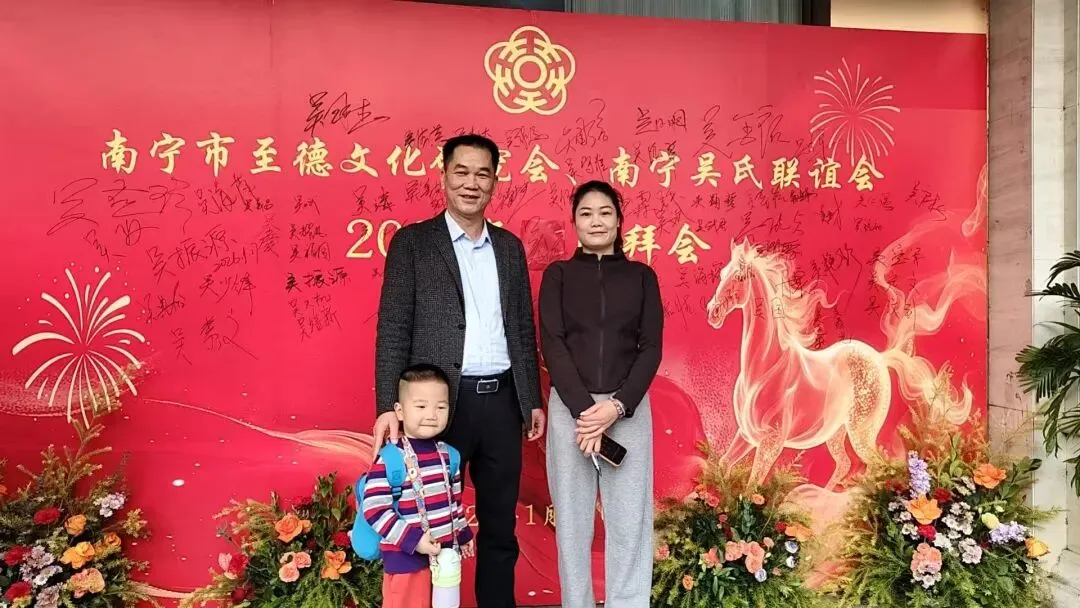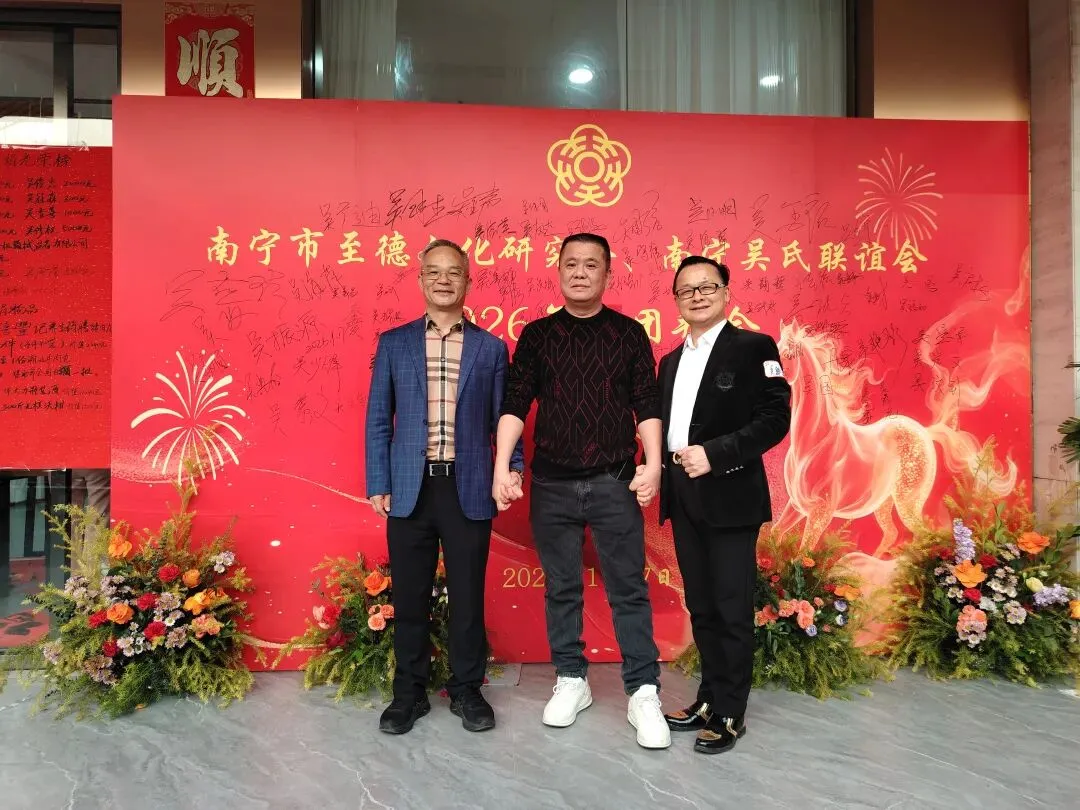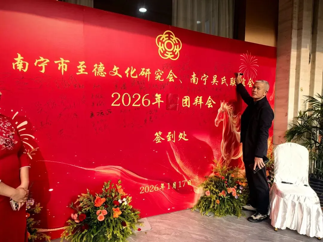 【南宁吴氏】1月17日下午,南宁市至德文化研究会、南宁吴氏联谊会2026迎春团拜会在大惠丰江北店举行。会长吴晖,名誉会长吴晓明、吴长勇,执行会长吴荣举、吴艳梅、吴俊杰、吴清山、吴汉城,秘书长吴善辉,广西吴氏经济文化发展联谊会执行会长吴金祏、吴东等220多位宗亲参加了团拜会。