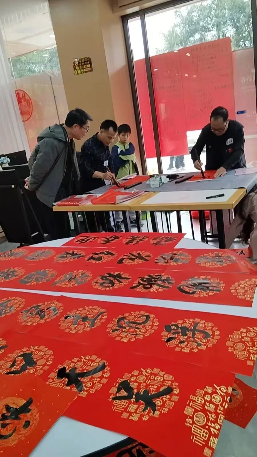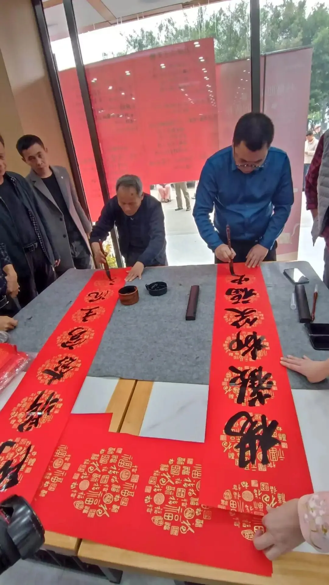 书法家吴大友、吴昭华、吴显艺、吴福同、吴巨文现场挥毫,给宗亲们送“福”字、写春联。