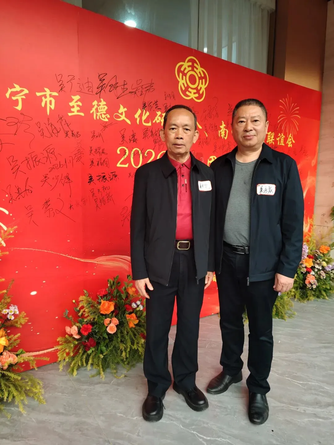 广西吴氏联谊会第一届第二届元老吴素文二姐专程参加活动,并特意准备了一束鲜花,向宗亲们拜年。