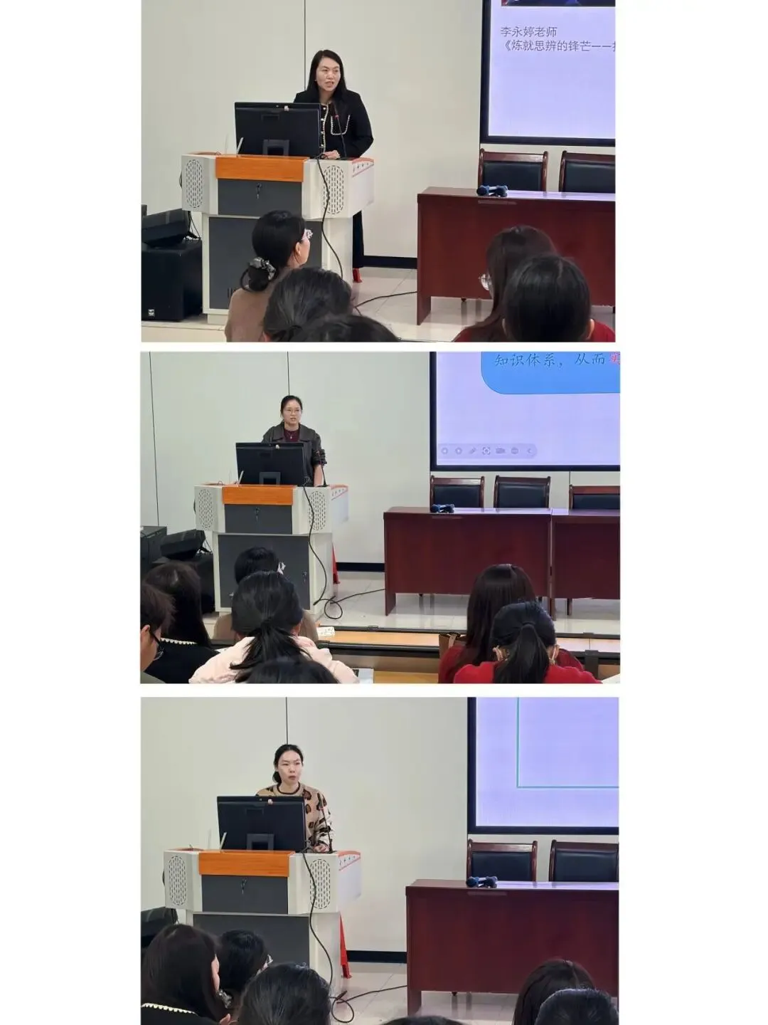 第三阶段,各学科组长或备课组长围绕思维培养核心问题展开互动研讨与总结,通过关注学生思维生长的关键节点,提炼可迁移的思维激发策略,反思教学优化空间,共同探讨课例对学科思维培养的启示。同时,各科也明确了优化方向,表示今后要将思维培养从隐性目标转化为显性设计,通过“情境导入—思维训练—迁移应用”的闭环,实现知识学习与思维提升的有机统一,为学生核心素养培育提供了切实可行的教学路径。