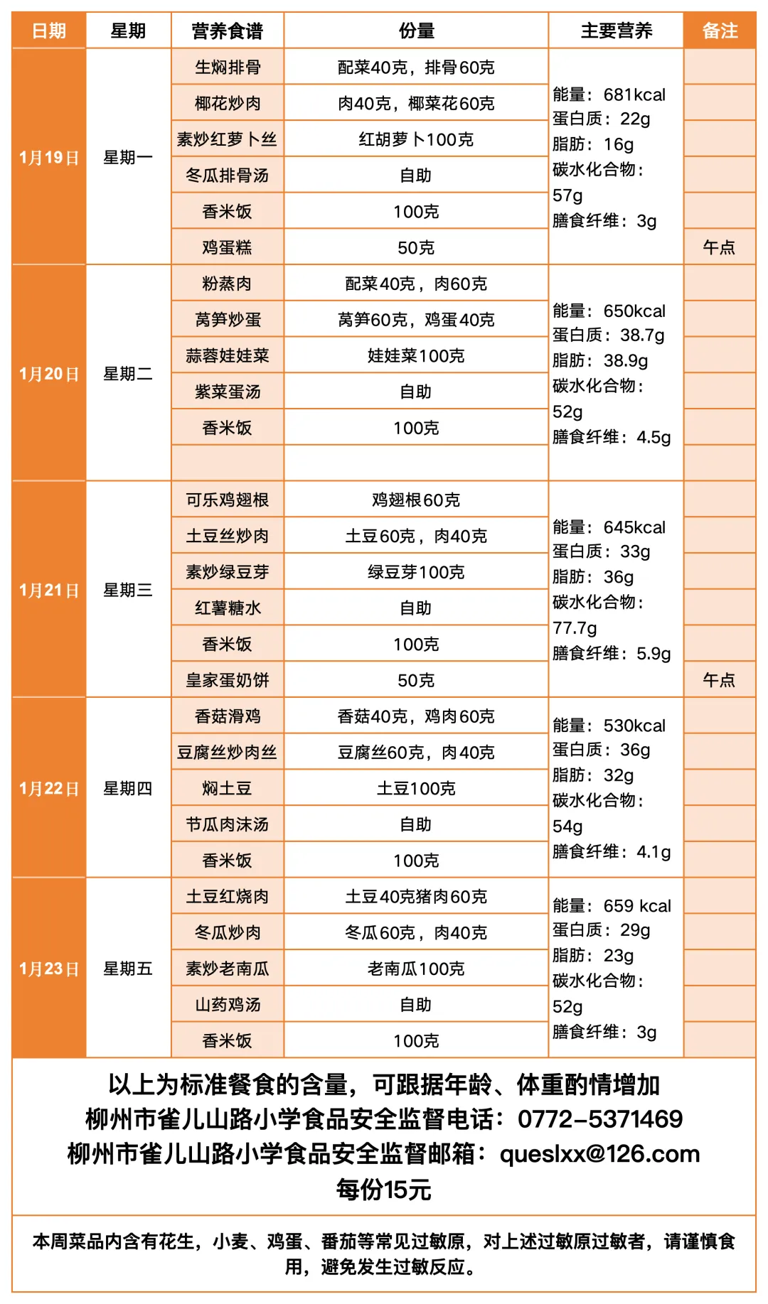 >柳州市雀儿山路小学午托食堂第二十一周食谱公示