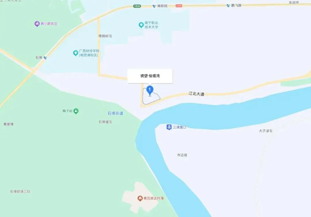 从位置来看,此次拍卖的房子所在小区骋望·怡璟湾,其最大优势就是一线江景房,然后就没有其他优势了,小区位于南宁市西部的石埠街道了,这个地方,周边配套还是比较欠缺的,虽然北部有不少高校,但是离小区还是有点距离的,附近没有商场、中小学、医院等配套。距离地铁站大概有2公里。当然,从交通区位来看,如果有私家车的话,出行还是比较方便的,小区旁边就是江北大道,距离南宁绕城高速石埠收费站也是非常近。