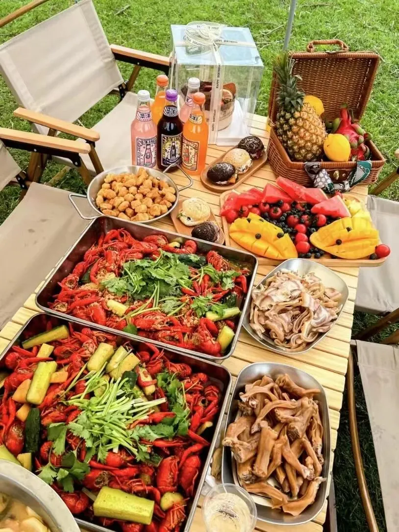 在周末,三五朋友欢聚露营,来上一盘小龙虾,一起剥虾壳、嘬虾头、啖虾肉,尝一口夏天专属的Q弹鲜香,放下手机,谈论生活的点滴,分享彼此的故事,是放松休闲最好的选择。