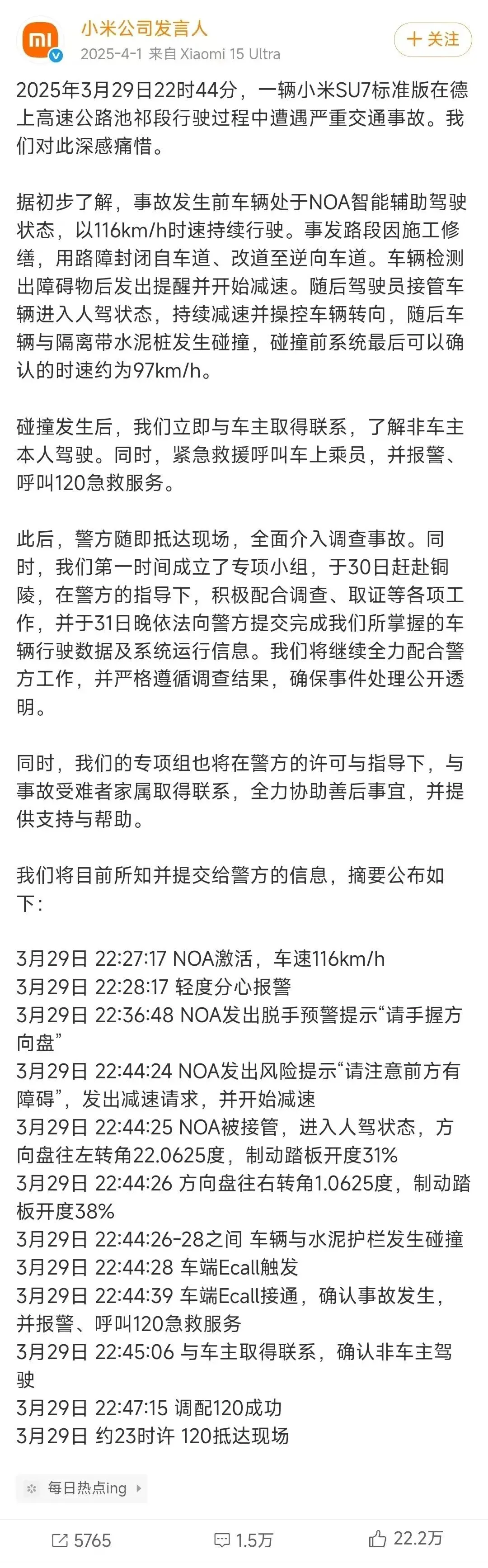现在交警已经认定车主全责,司机也亲自回应是自己超速操作失误,全程没开辅助驾驶,事情算尘埃落定。但这起事故留下的思考远没结束,智能汽车普及后,事故责任认定、数据隐私保护都是绕不开的话题。