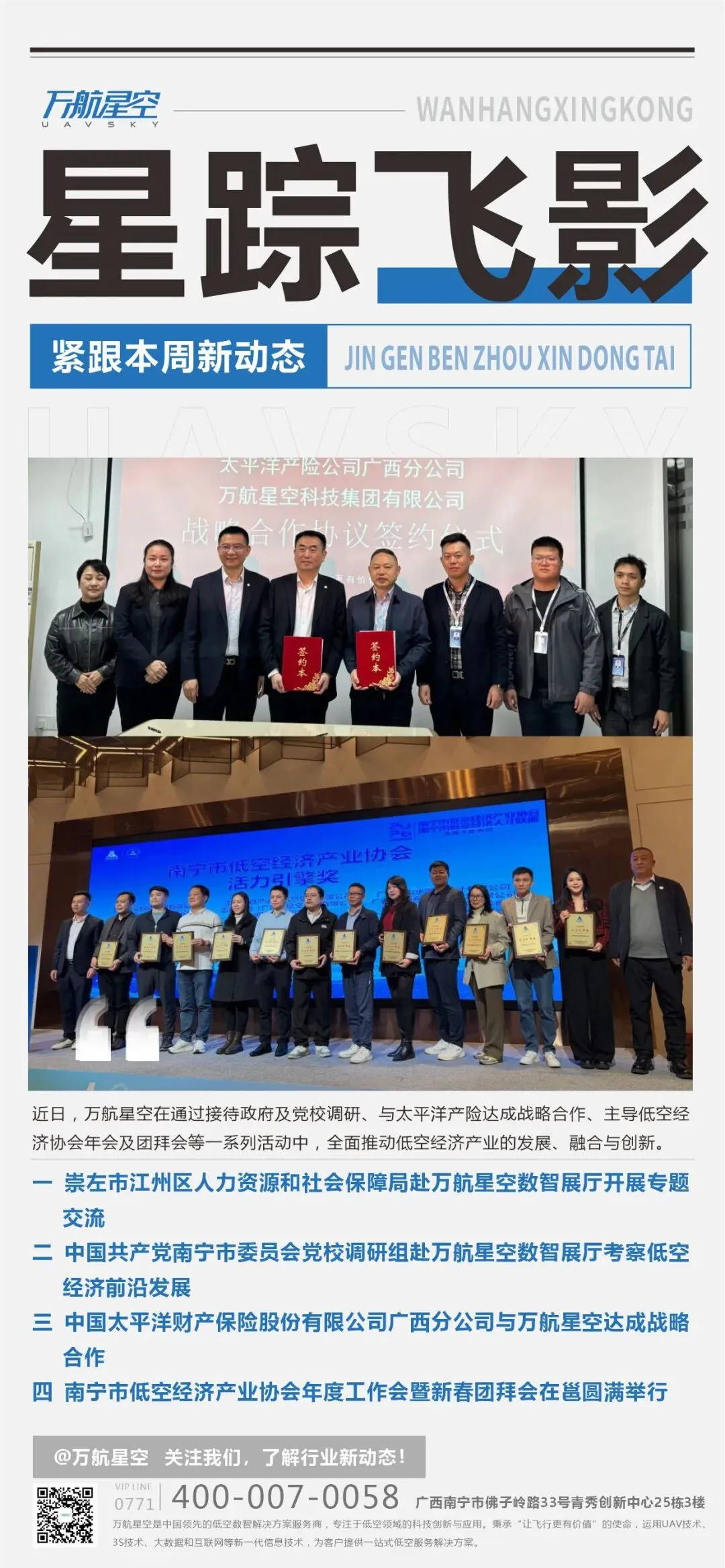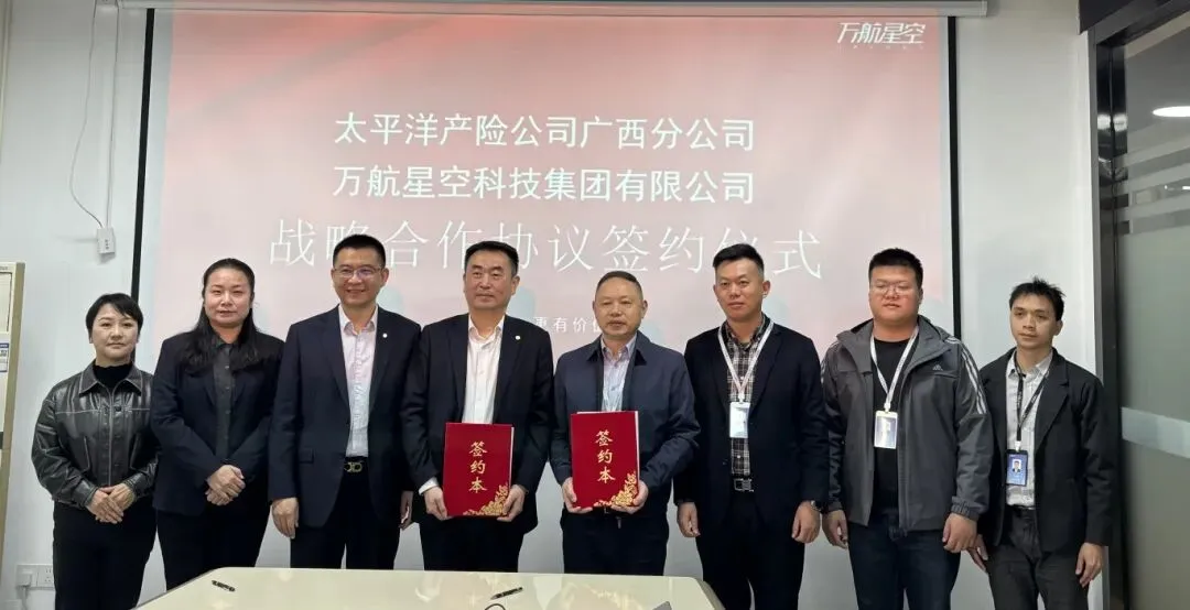 1月15日,中国太平洋财产保险股份有限公司广西分公司与万航星空科技集团有限公司在南宁举行战略合作签约仪式。太平洋产险广西分公司发展总监,南宁中心支公司党支部书记、总经理刘民罡、万航星空董事长王伟任等双方代表出席活动。