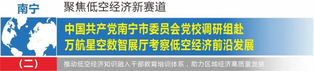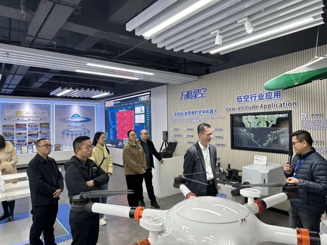 1月14日,中国共产党南宁市委员会党校副校长刘少莹率调研组赴万航星空数智展厅开展专题调研。深入了解低空经济领域的前沿技术、创新成果及实践应用。双方围绕低空经济发展现状与趋势、干部教育培训现场教学合作等内容进行了深入交流,旨在为南宁市高质量发展注入新动能,探索教育培训与产业创新深度融合的新路径。