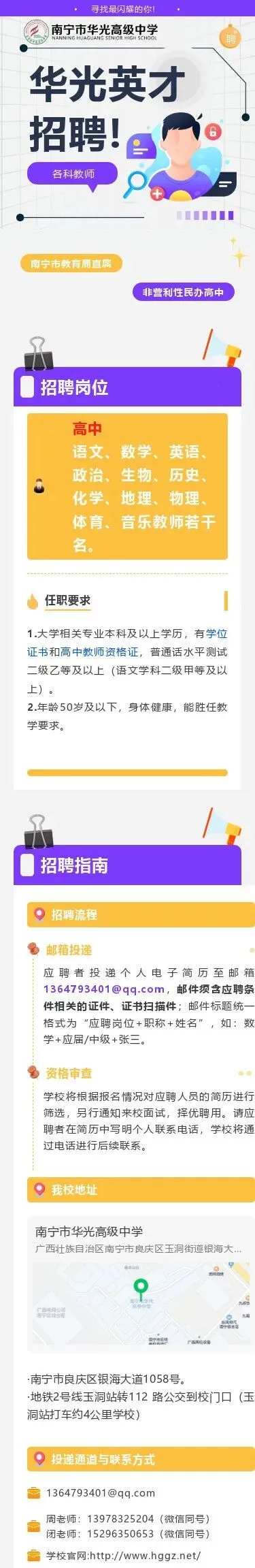 >【南宁教师招聘】2026年南宁市华光高级中学教师招聘公告