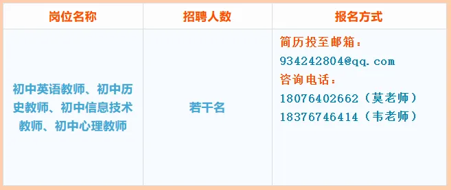 初中英语、历史、信息、心理顶岗教师若干名