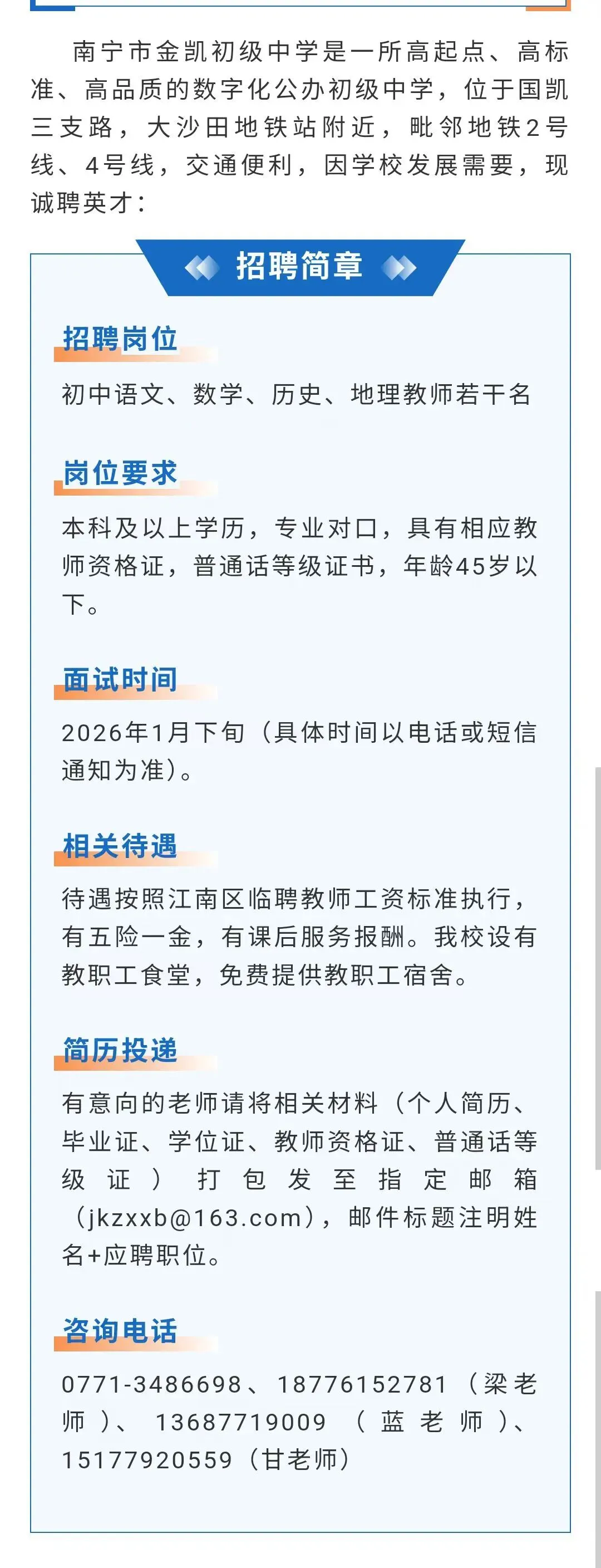钦州教师招聘|钦州市教育系统2026年“钦聚英才” 专场集中招聘急需紧缺人才和硕士研究生骨干教师公告