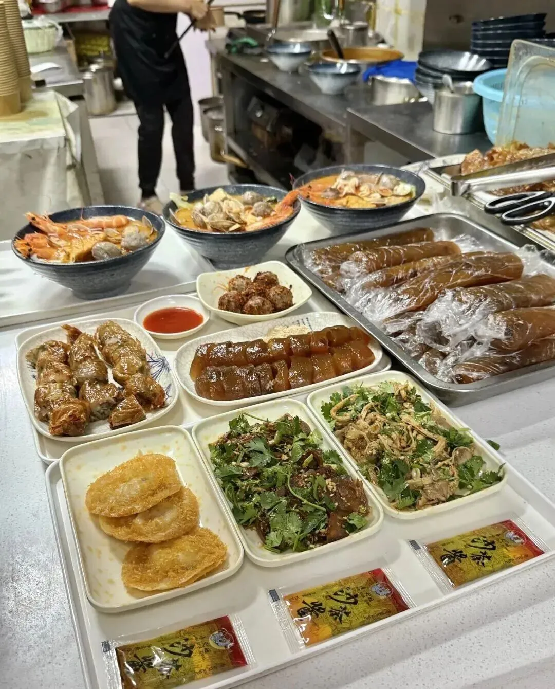 问了老板 , 她说是沙茶面 , 可我之前在别的地方也吃过沙茶面 , 味道完全不一样啊。 这个更香 , 汤更稠 , 感觉配方不太一样。